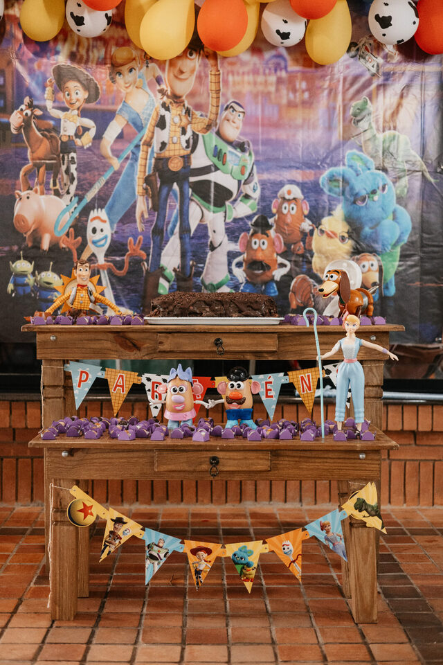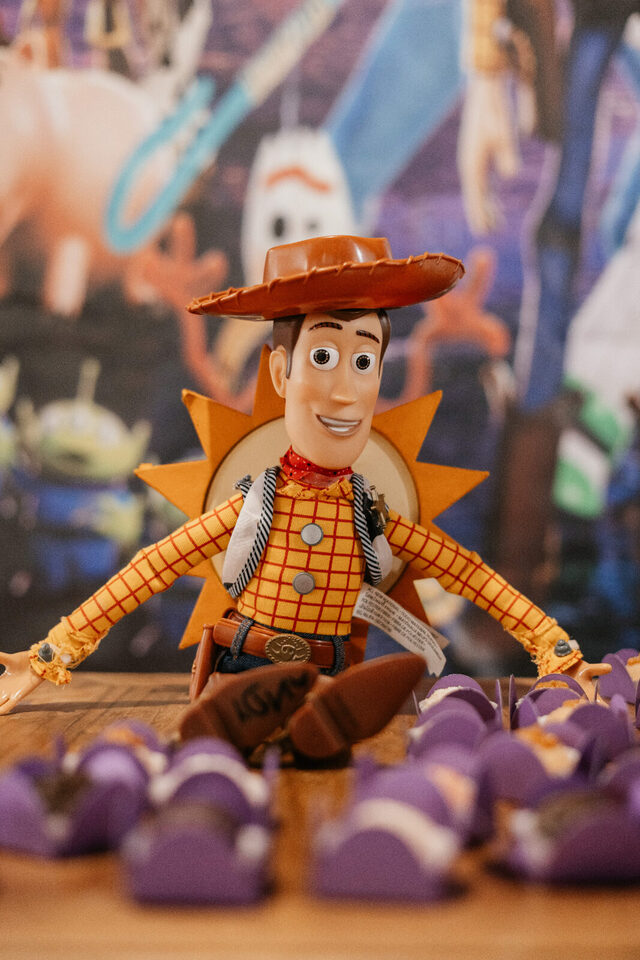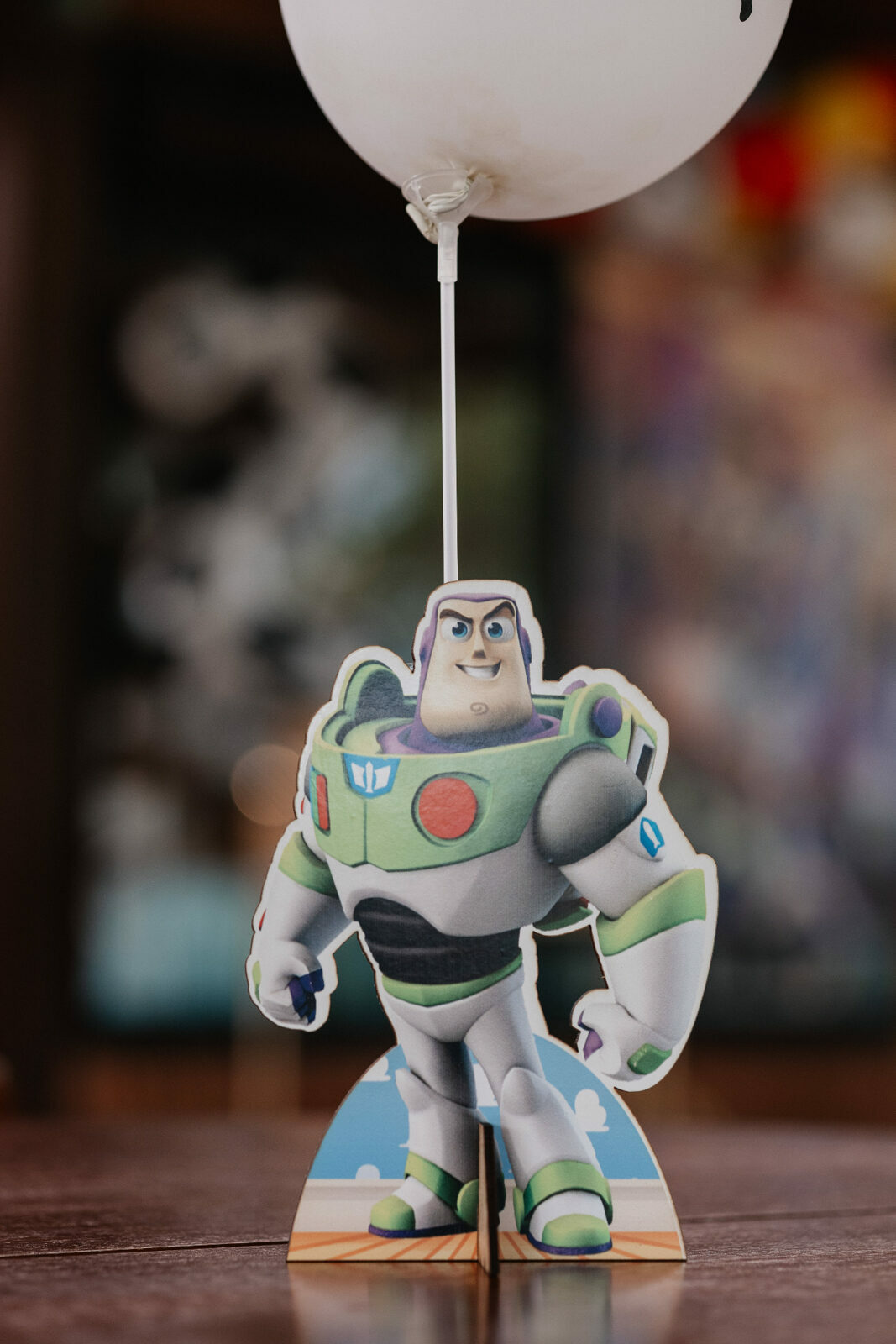 A decoração temática foi um destaque à parte, com uma mesa de doces personalizada, elementos clássicos do filme e uma paleta de cores vibrante que reforçou o clima lúdico da festa. Cada detalhe foi pensado para transportar os convidados diretamente para o universo Toy Story.