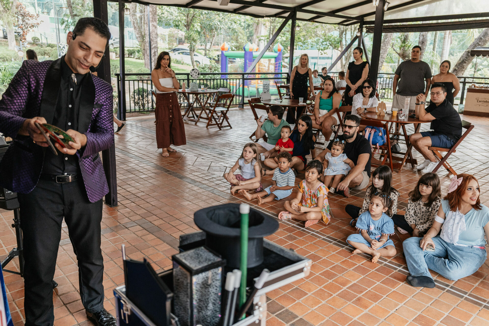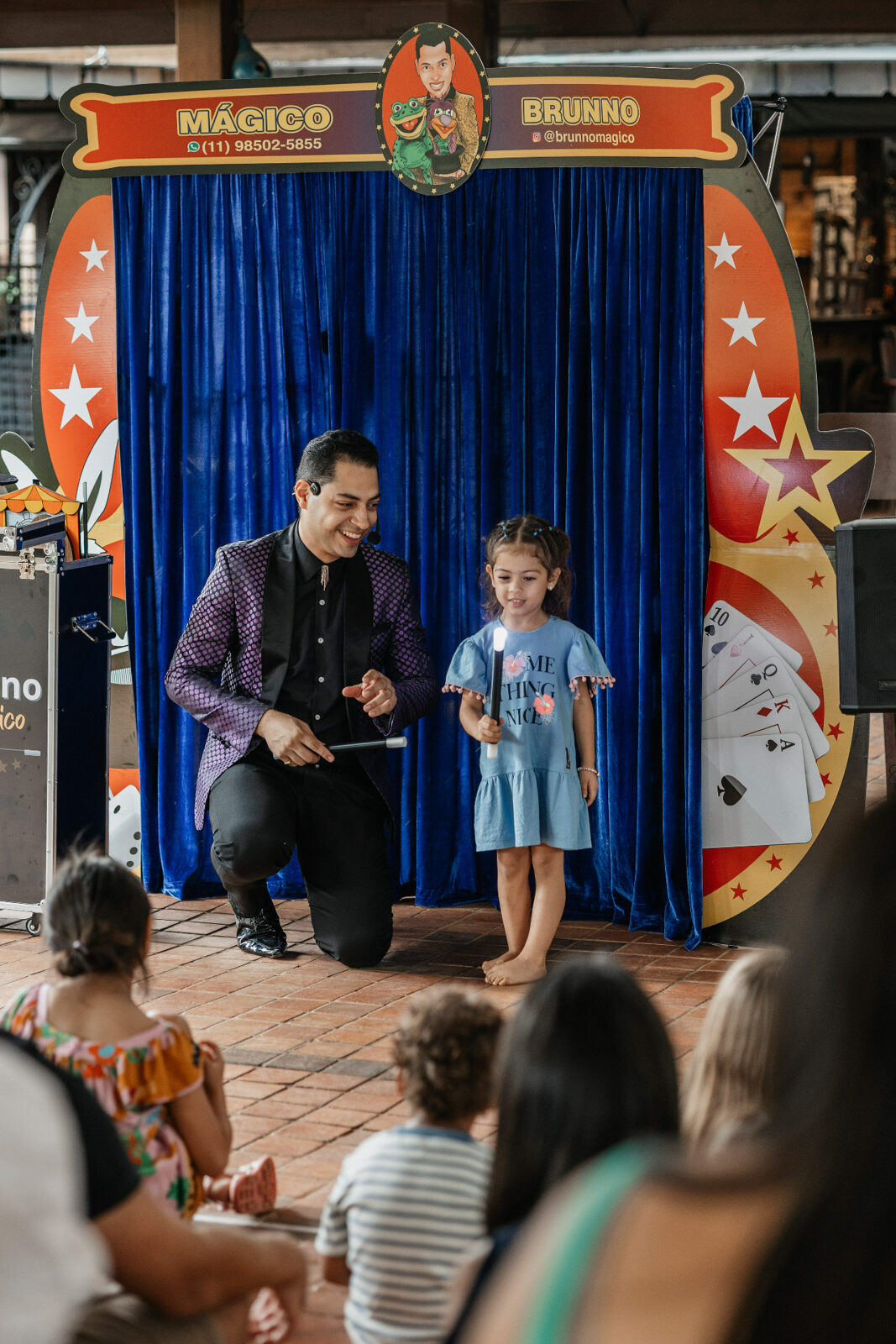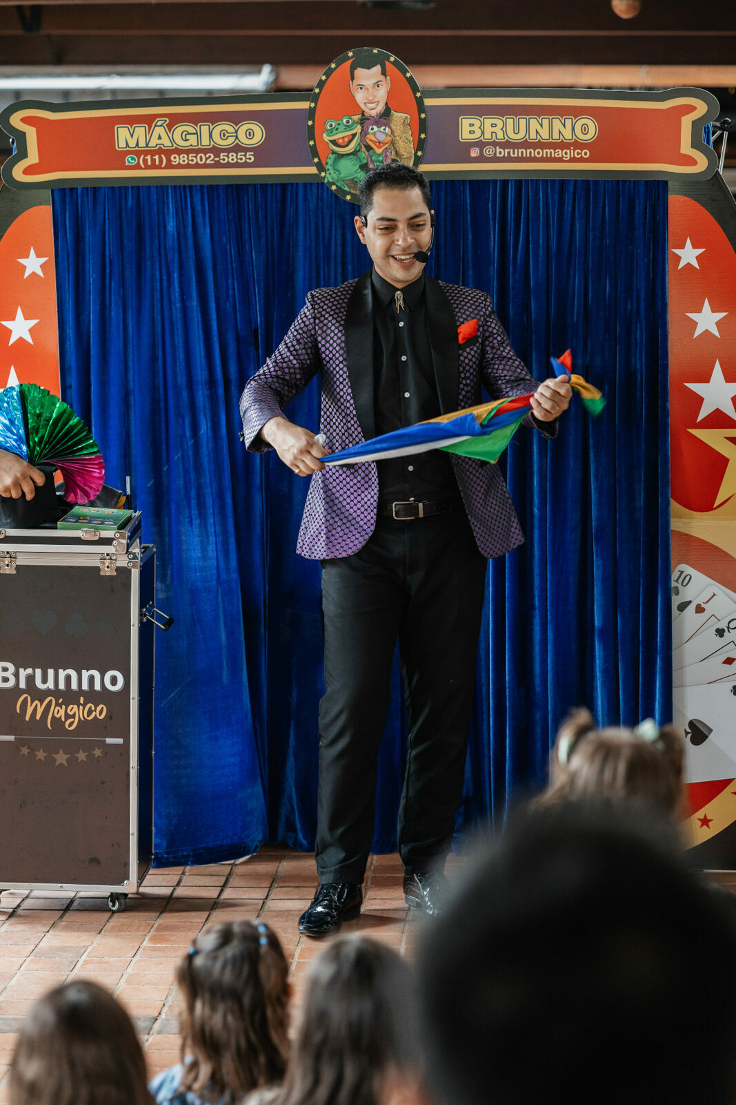Outro momento marcante foi a apresentação de um mágico, que garantiu entretenimento e surpresa para as crianças, tornando a celebração ainda mais inesquecível.