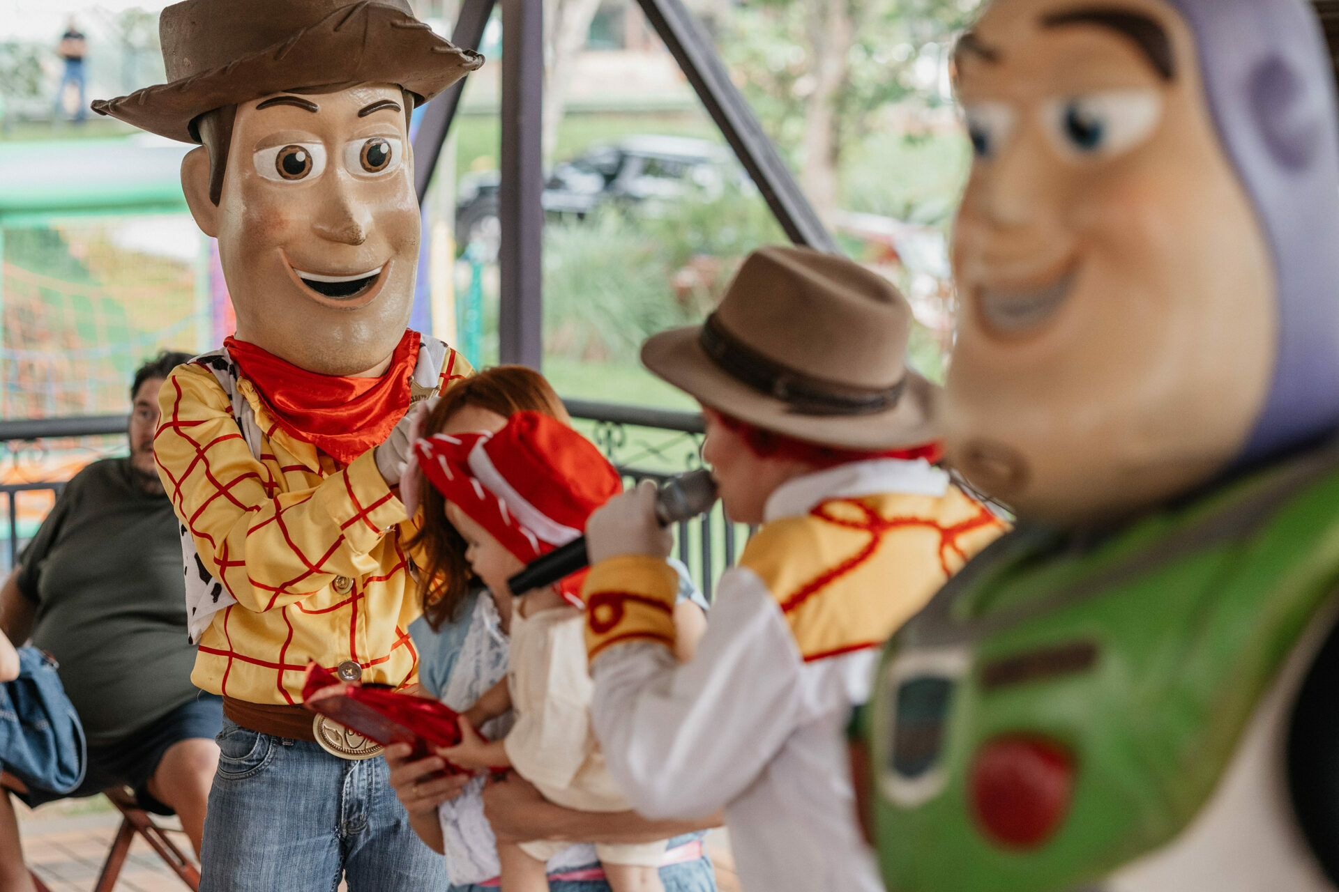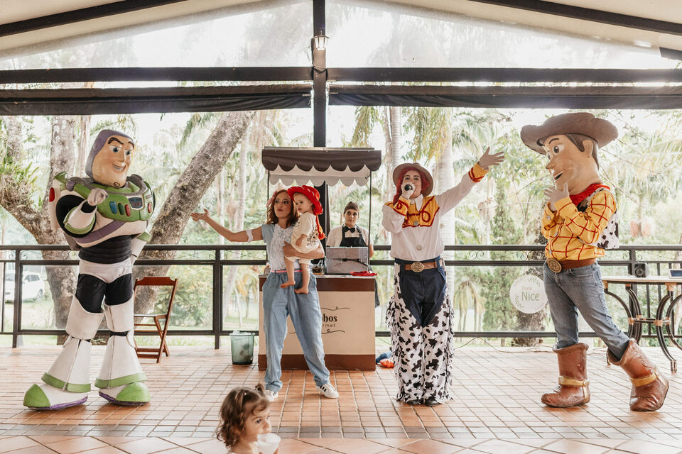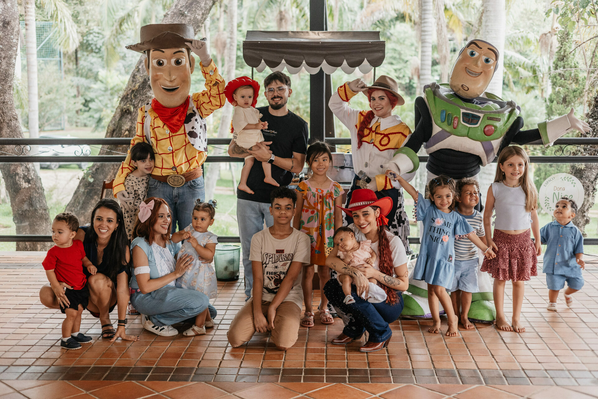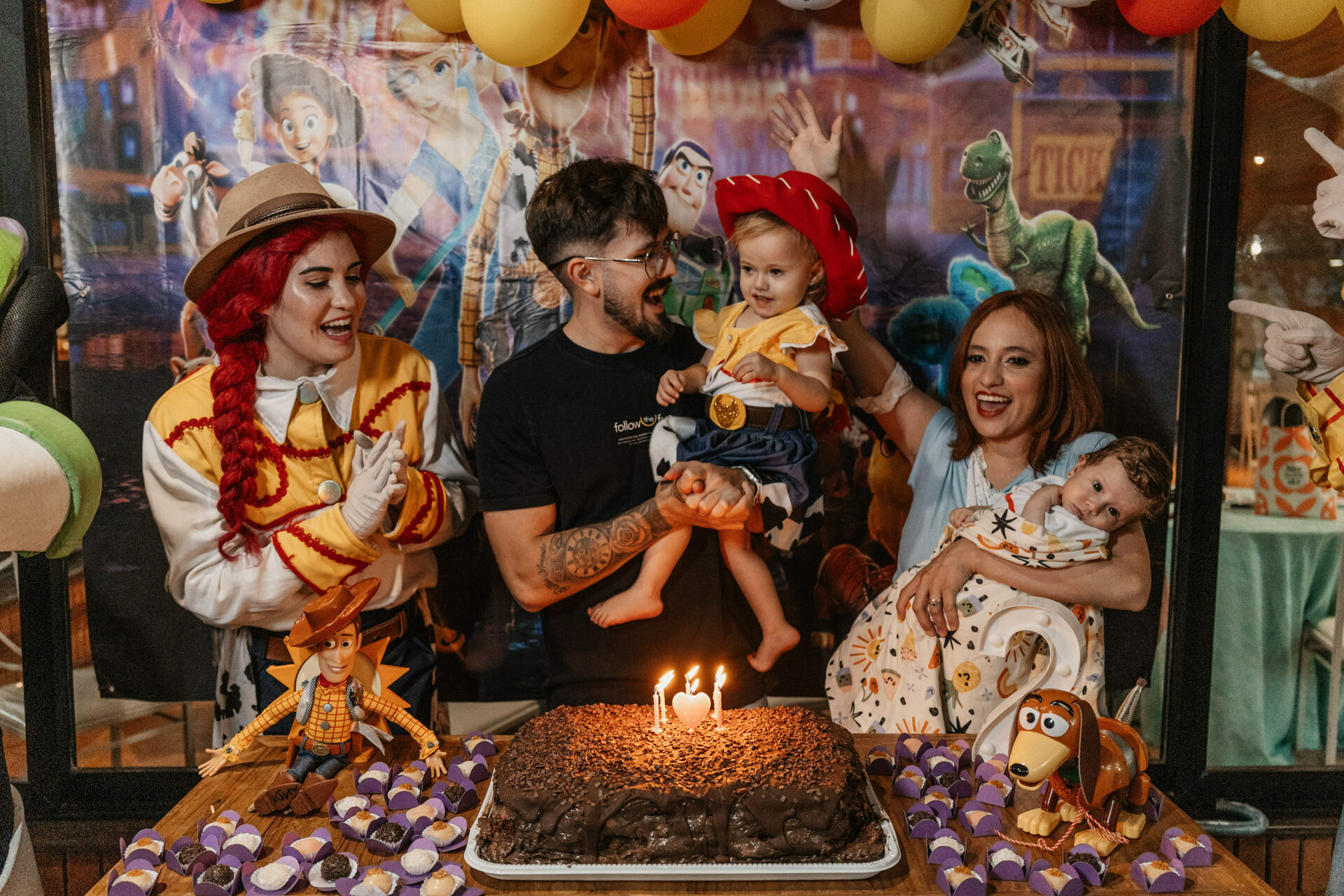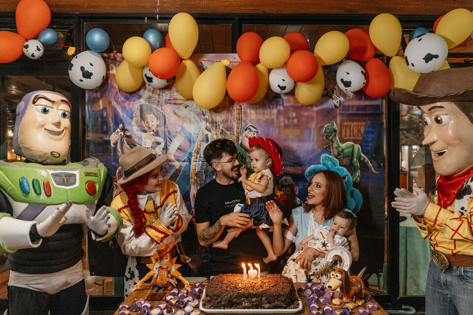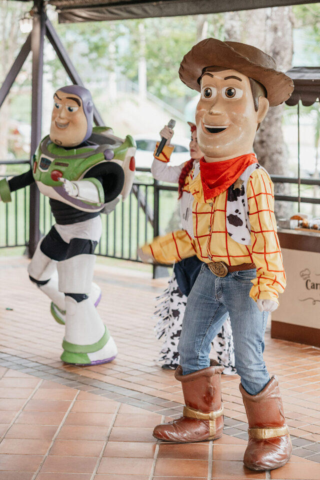 O grande diferencial do evento foi o envolvimento da família, que entrou totalmente no clima ao se vestir como personagens do filme, criando uma experiência ainda mais especial e afetiva. Além disso, a presença de personagens vivos — como Woody, Jessie e Buzz Lightyear — trouxe ainda mais magia para o aniversário.