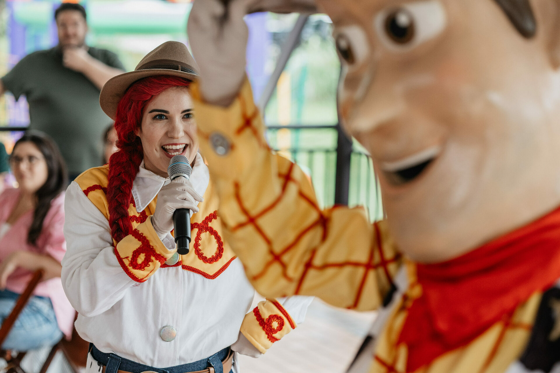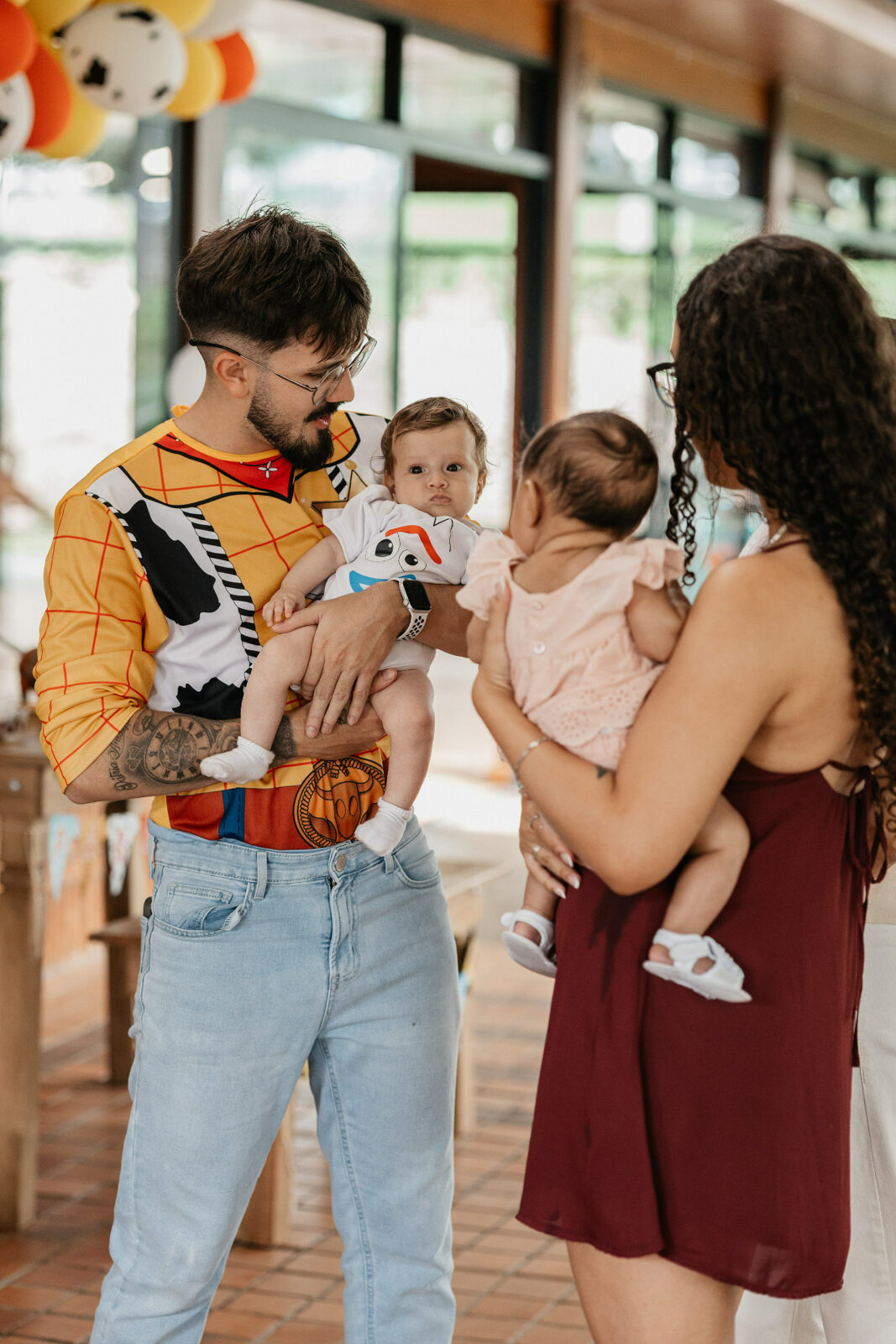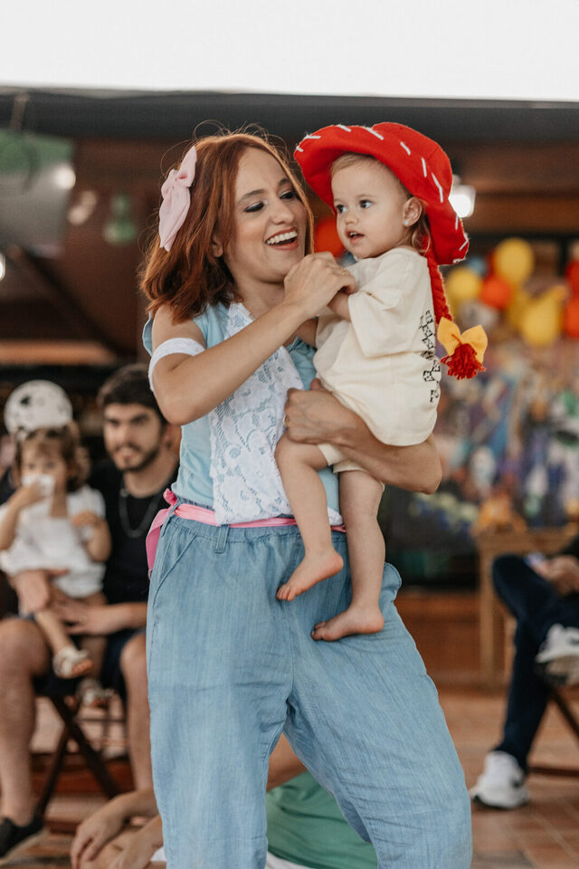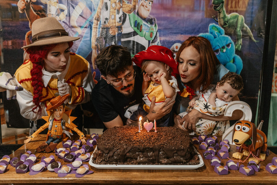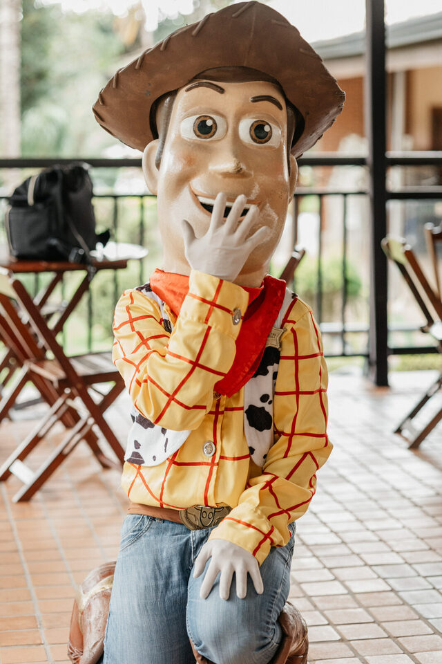 O grande diferencial do evento foi o envolvimento da família, que entrou totalmente no clima ao se vestir como personagens do filme, criando uma experiência ainda mais especial e afetiva. Além disso, a presença de personagens vivos — como Woody, Jessie e Buzz Lightyear — trouxe ainda mais magia para o aniversário.