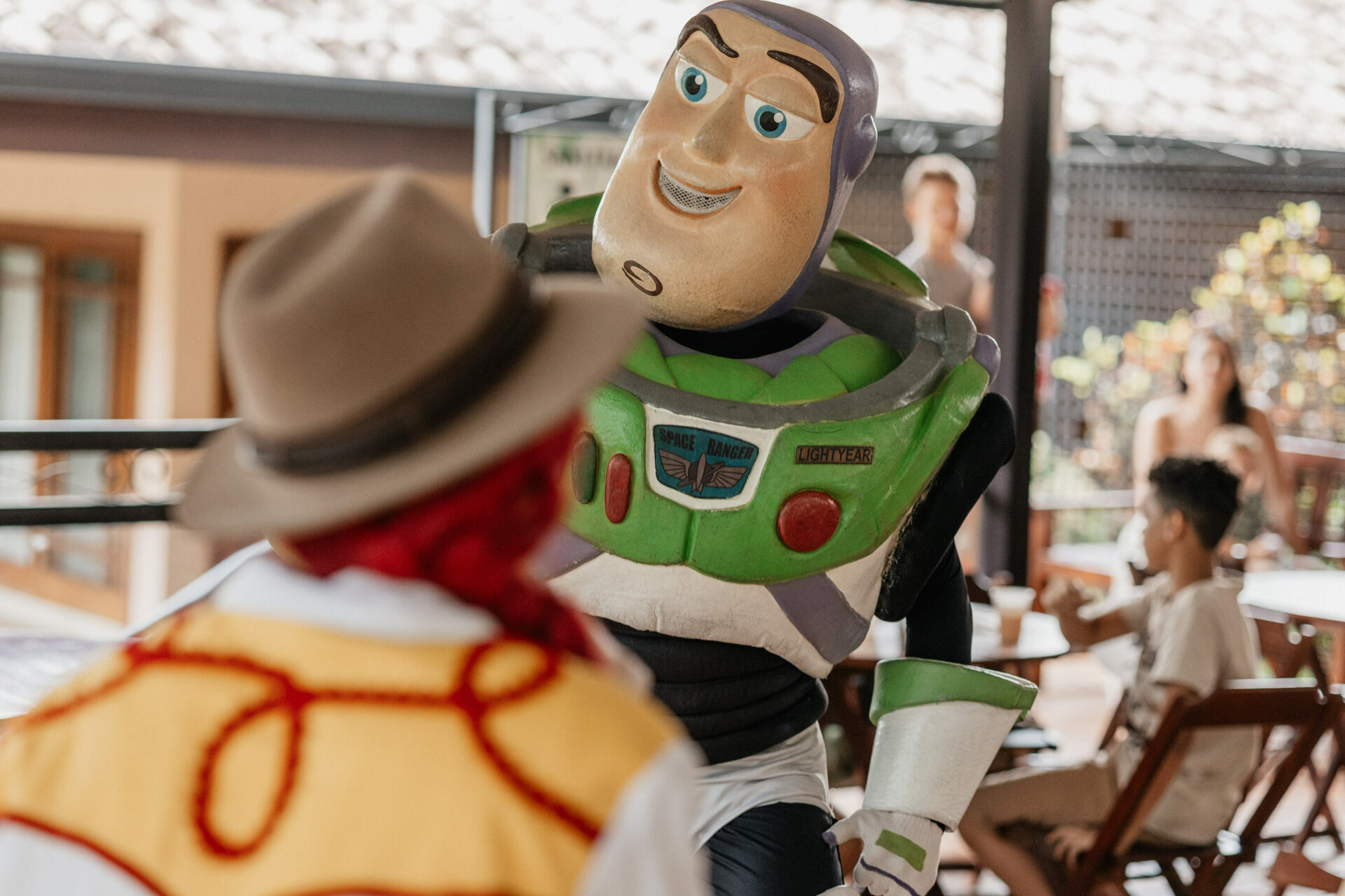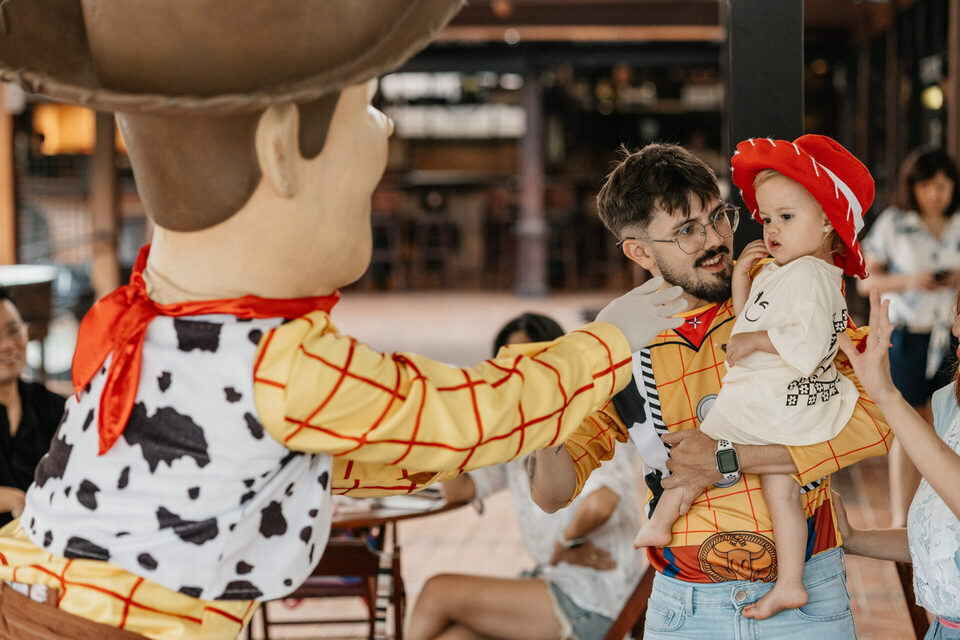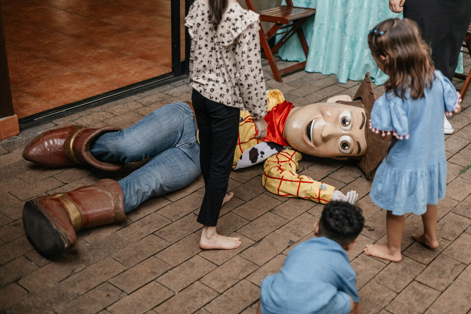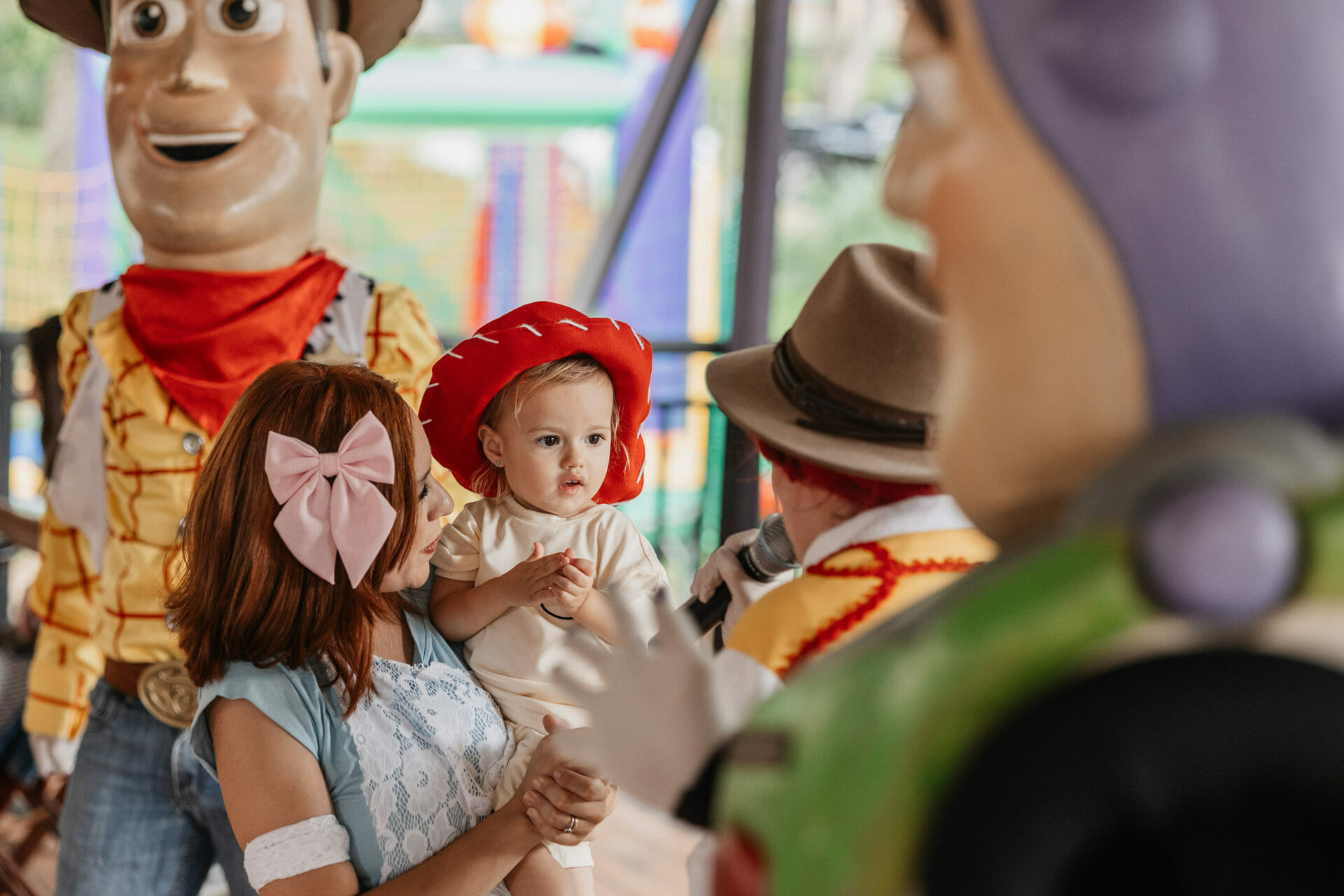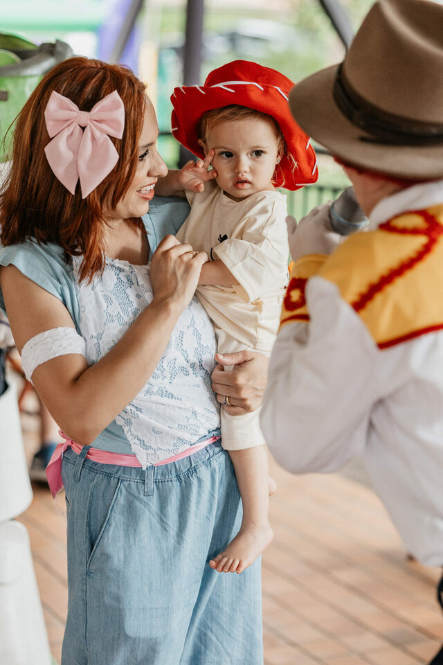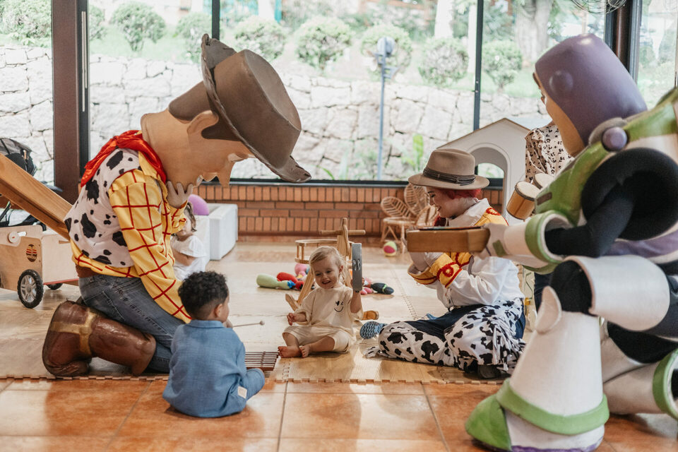 O grande diferencial do evento foi o envolvimento da família, que entrou totalmente no clima ao se vestir como personagens do filme, criando uma experiência ainda mais especial e afetiva. Além disso, a presença de personagens vivos — como Woody, Jessie e Buzz Lightyear — trouxe ainda mais magia para o aniversário.