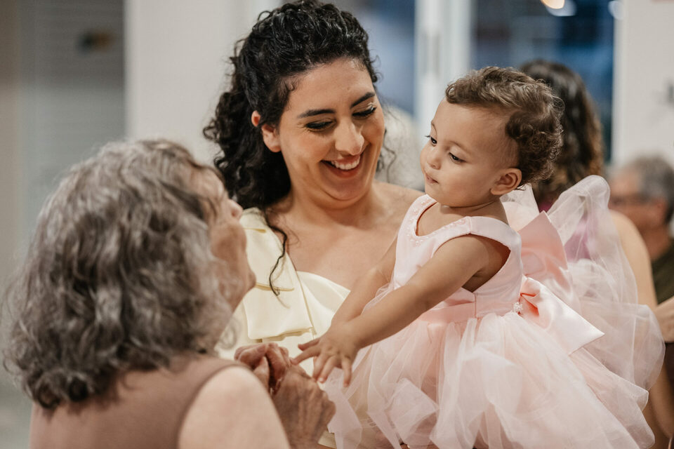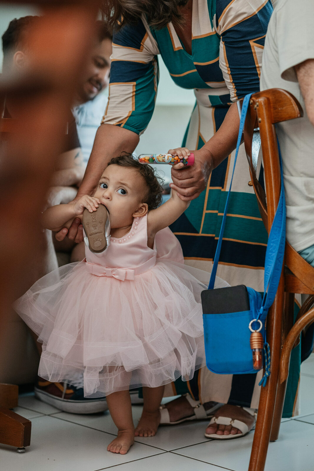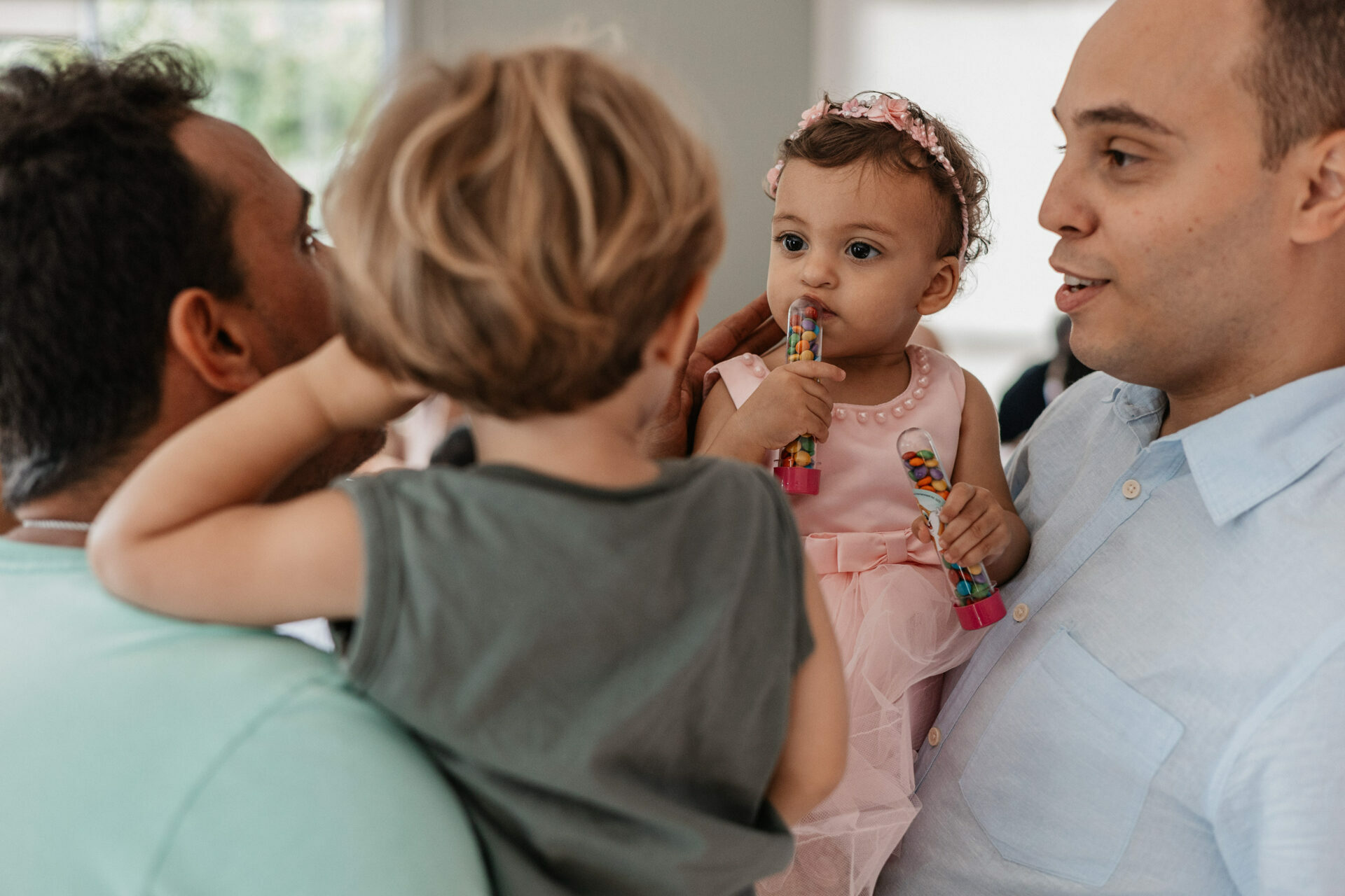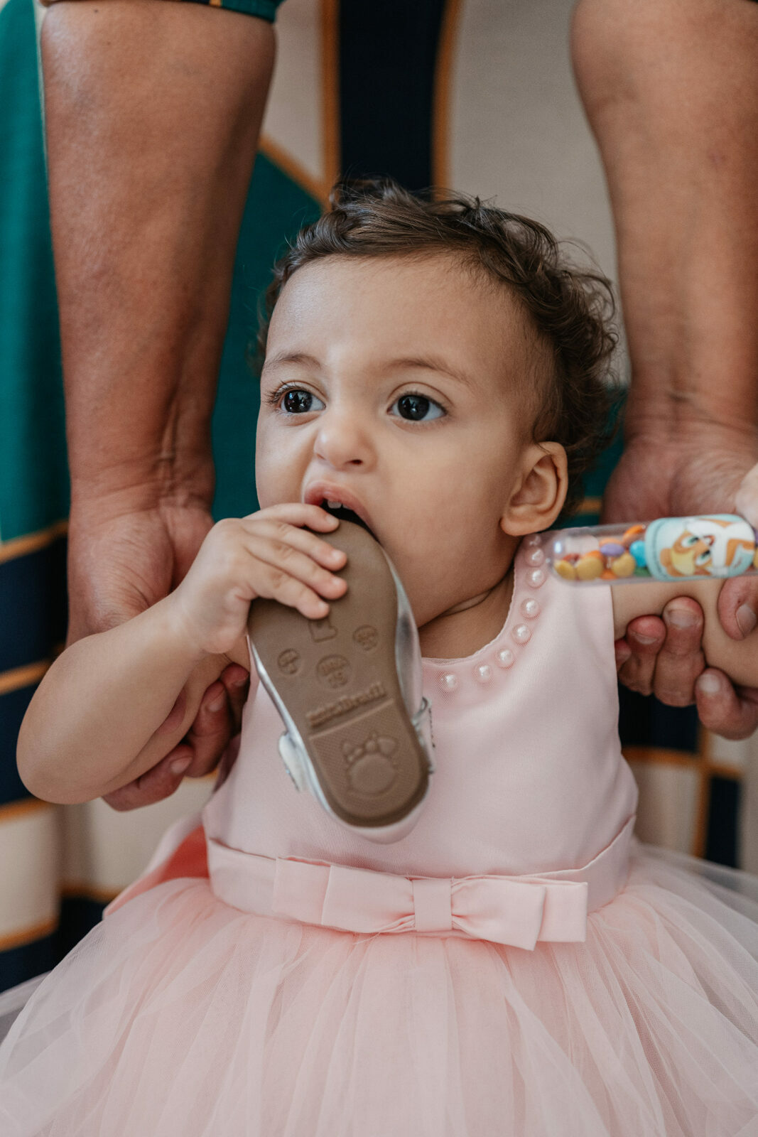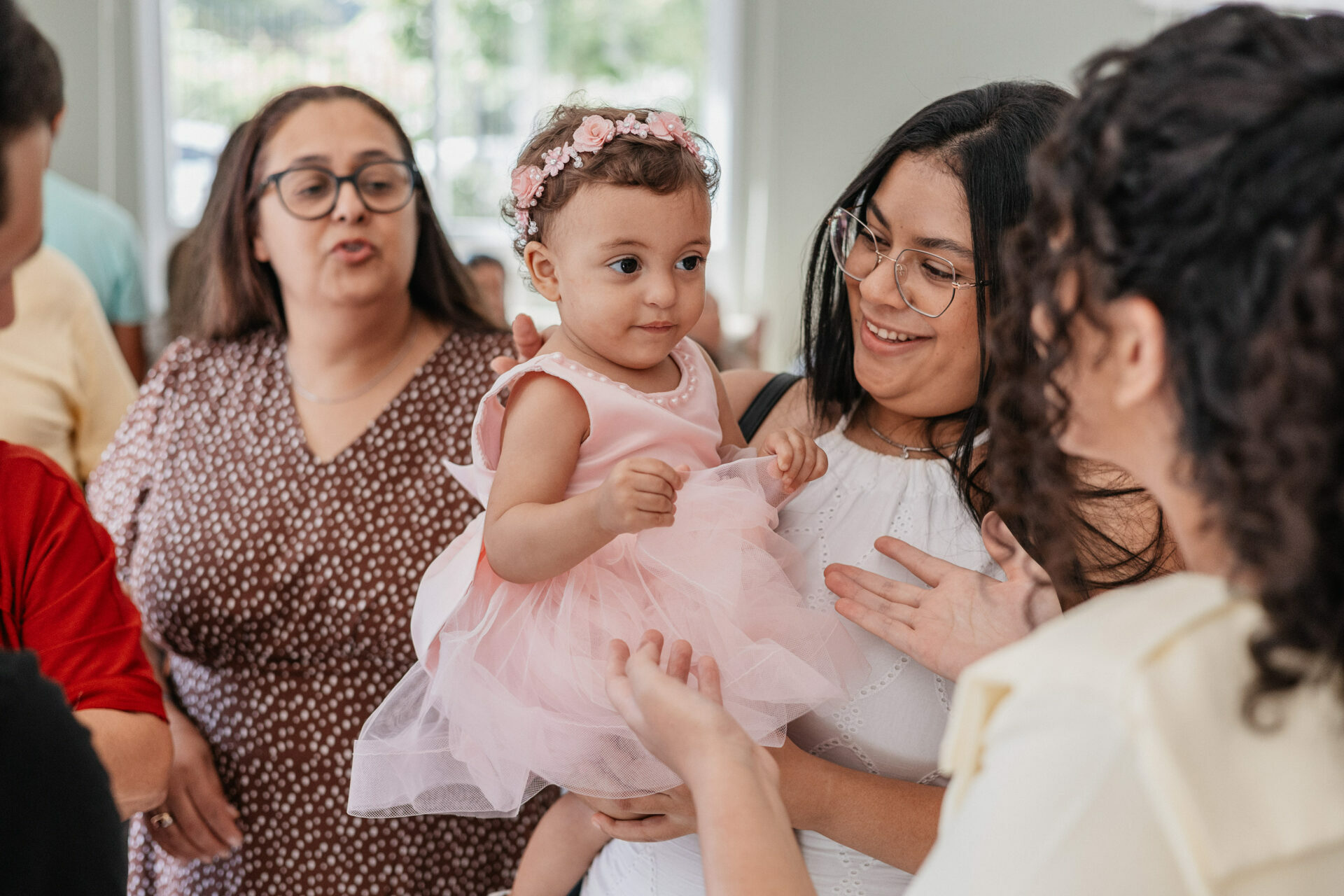 Beatrice, com seu vestido leve e olhar curioso, parecia descobrir o mundo a cada instante. No colo dos pais, entre risos e gestos de carinho, havia algo que não se ensaia: o amor em sua forma mais simples e verdadeira. Os beijos, os sorrisos e as pequenas interações revelavam aquilo que nenhuma produção consegue criar — a conexão real de uma família celebrando um marco tão especial.