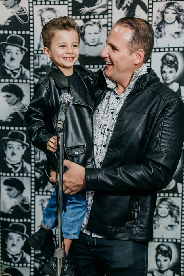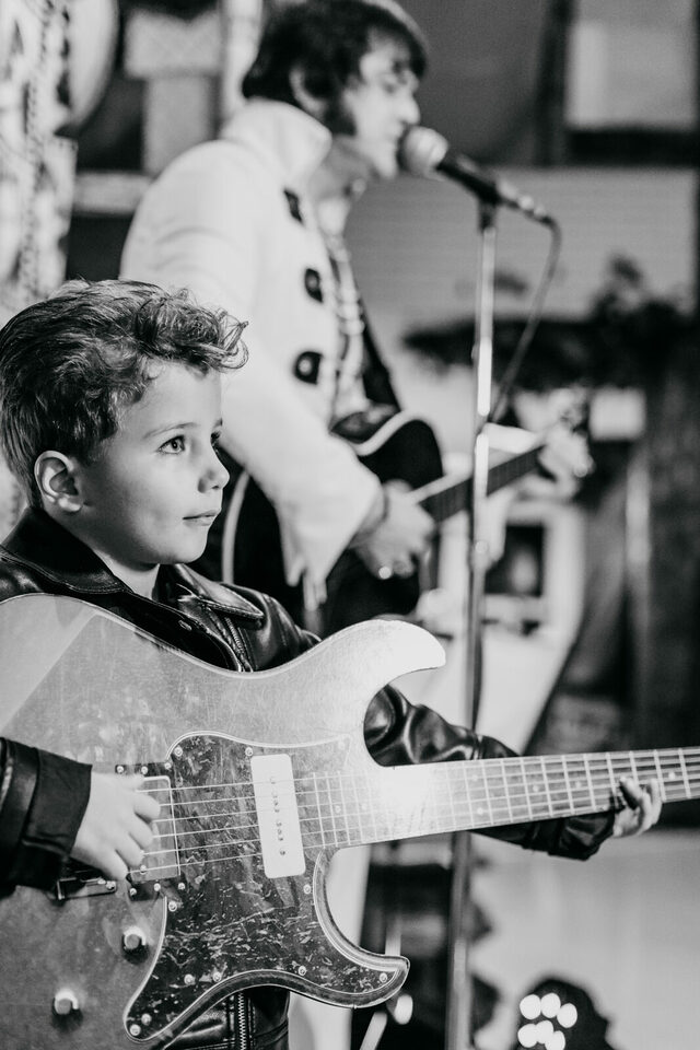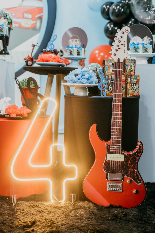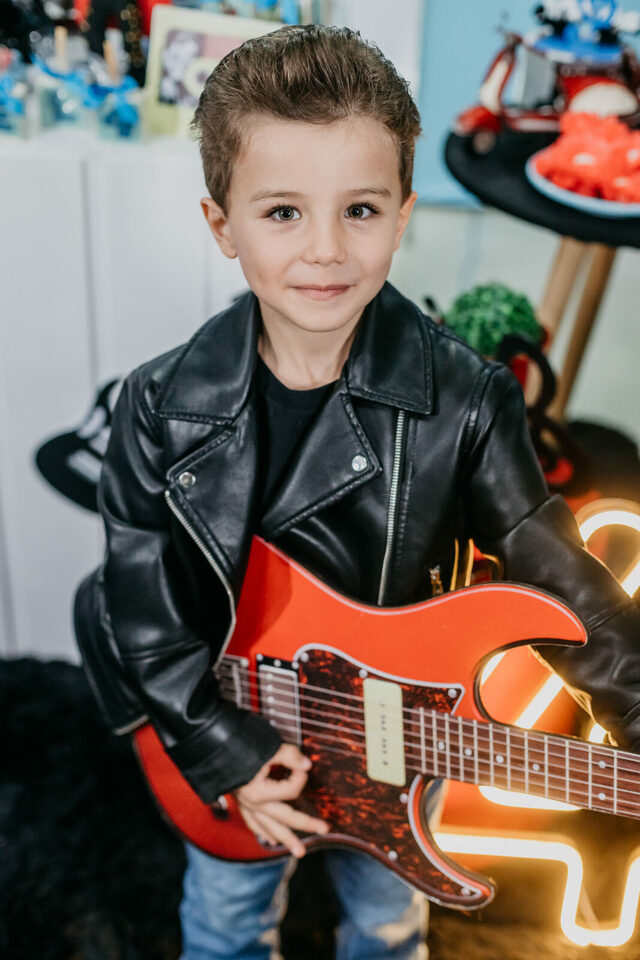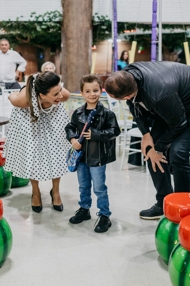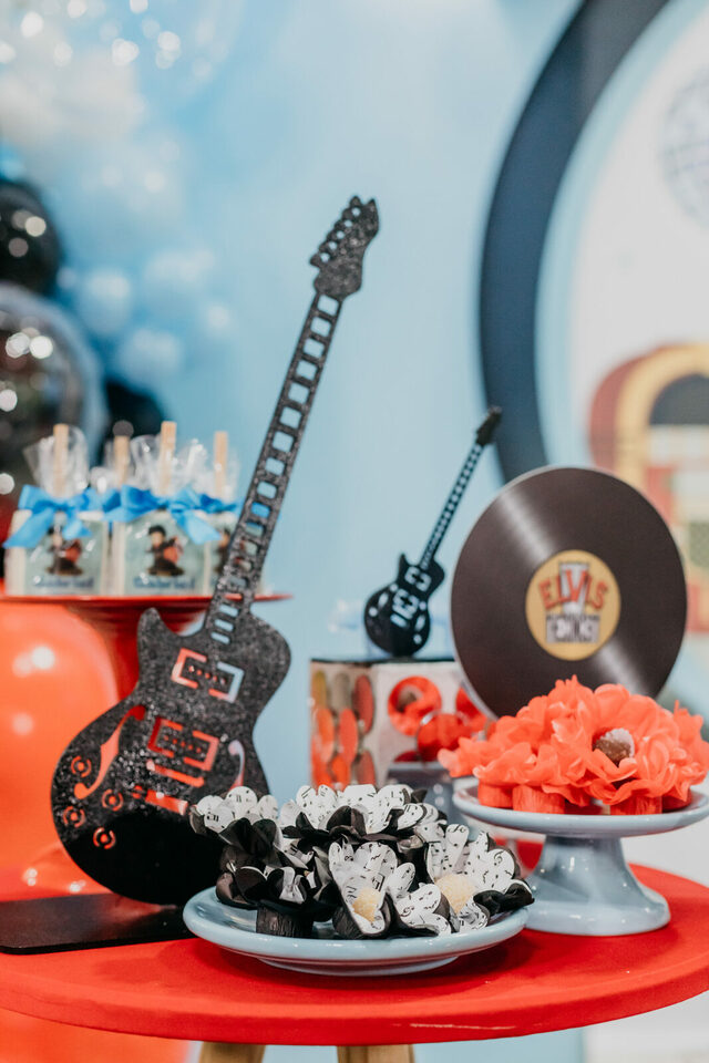 O mais legal de tudo isso, é que a Janaína e o Ricardo, prepararam uma surpresa para o Gabriel. Um show do próprio (cover) do Elvis. E sabe o que o Gabriel fez durante a apresentação? Ficou do lado do seu ídolo, tocando sua guitarra (que era parte da decoração da festa), o tempo todo. Ou seja, fomos brindados com uma apresentação inesquecível dos astros do rock.