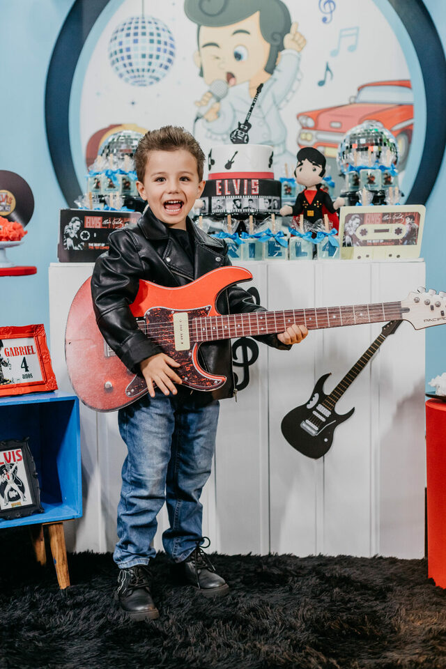 O Gabriel é um menino muito esperto e autêntico. Tão autêntico que nunca imaginei que de um aniversário do homem-aranha (quando ele completou 3 anos), ele escolheria o Elvis Presley como tema do aniversário de 4 anos.