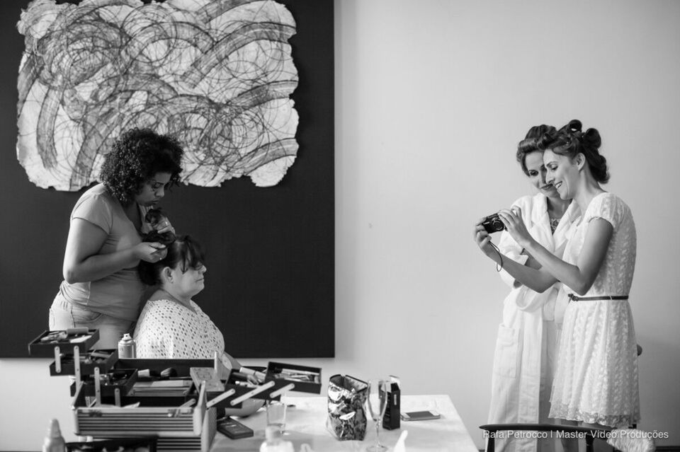 Mas esse casamento foi especial por outro motivo: Ao chegar para fazer o making-of da Priscila, reconheci uma das madrinhas, a Ana Luisa, uma noiva que fotografei em 2012, por outro estúdio. Que coincidência, não é mesmo?! – Ainda tem mais! – A Priscila, é a moça que pegou o buquet naquele dia! Bacana, né?!