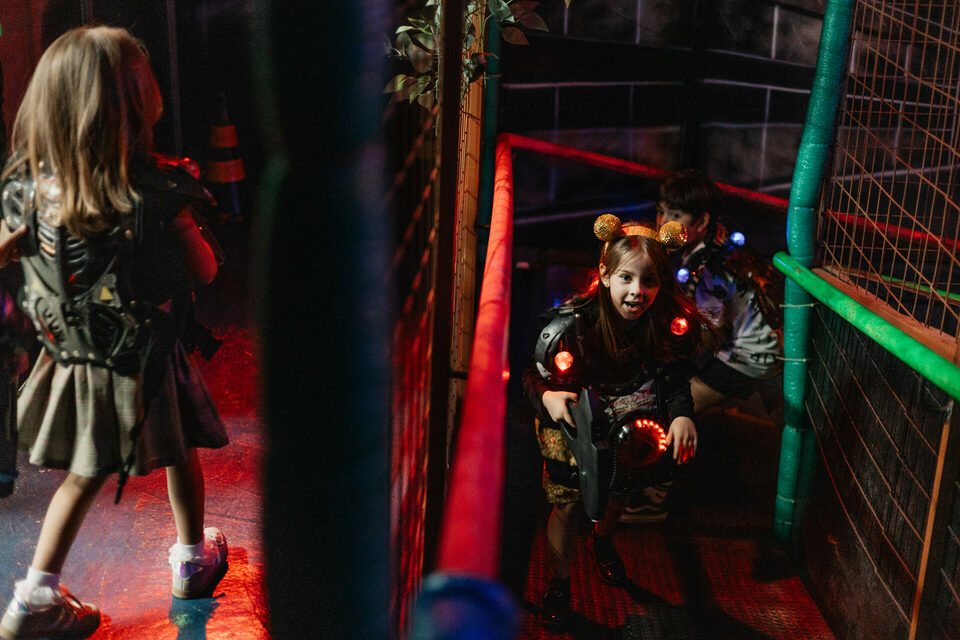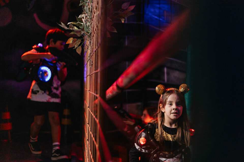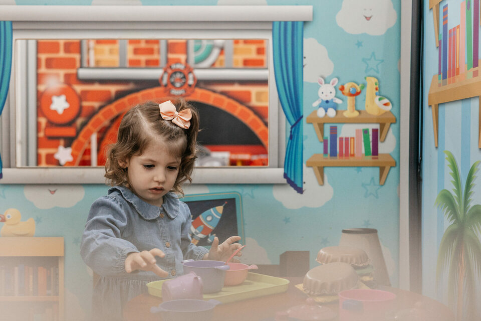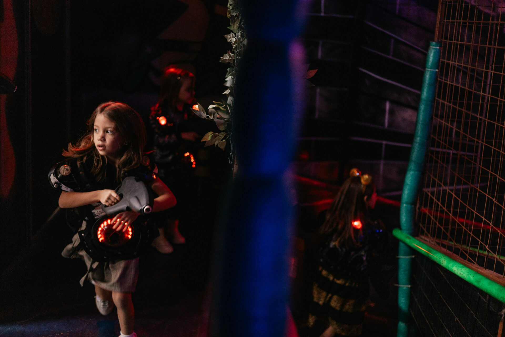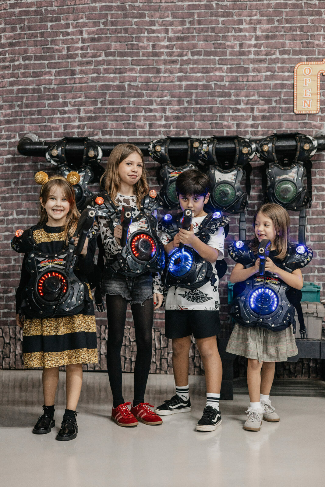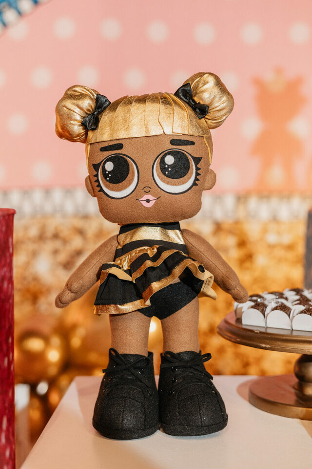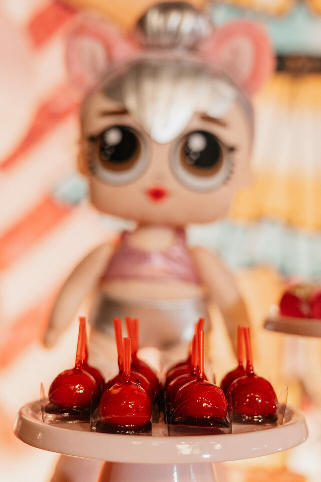 E o melhor? Ela não só escolheu o tema… ela virou o tema. Vestida como uma das personagens LOL, Laura parecia ter saído diretamente de uma das caixas-surpresa para a própria festa. A cada pose espontânea, a cada risada que escapava enquanto ela corria entre os brinquedos, dava pra sentir o quanto ela estava vivendo tudo aquilo com verdade, do jeitinho dela.