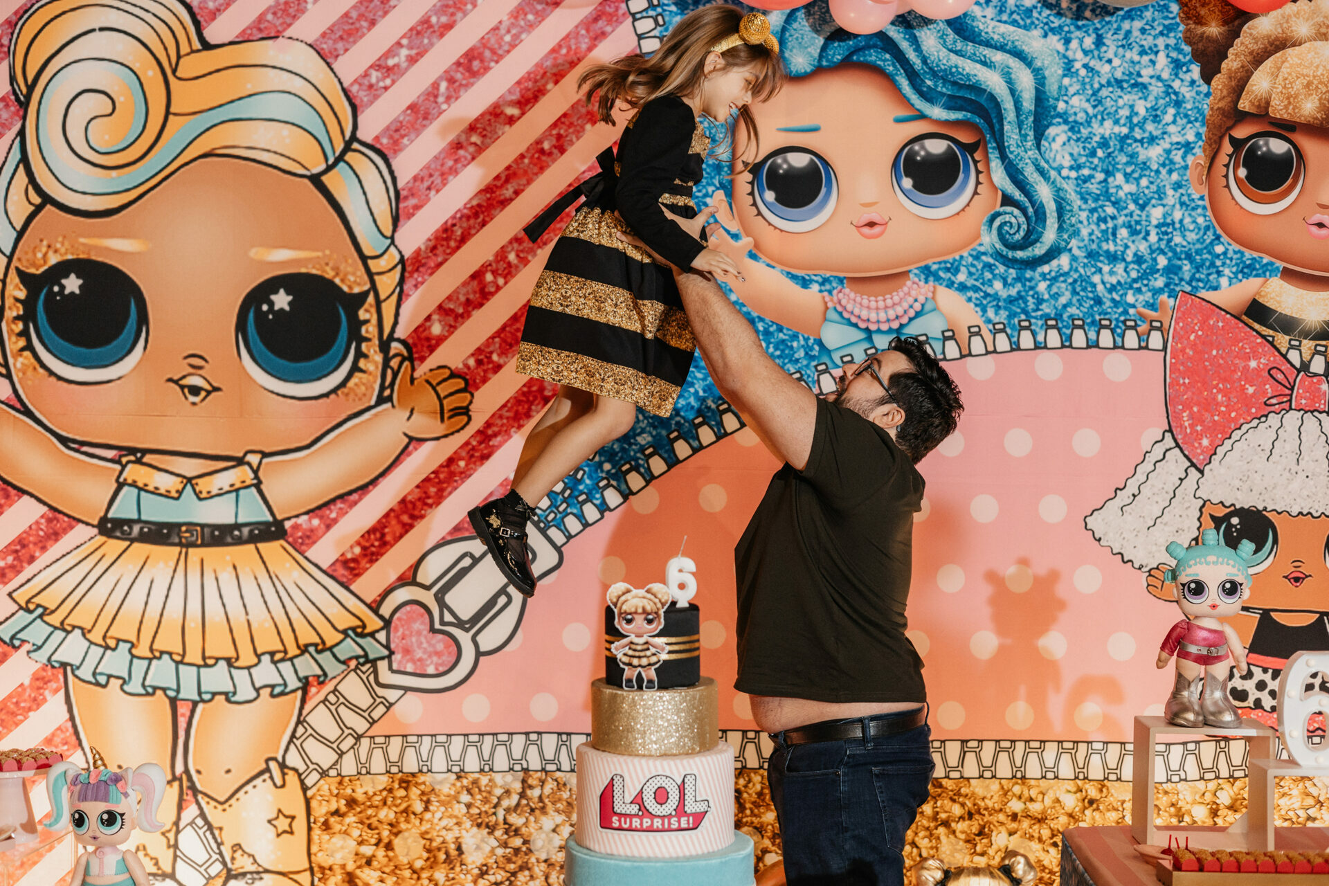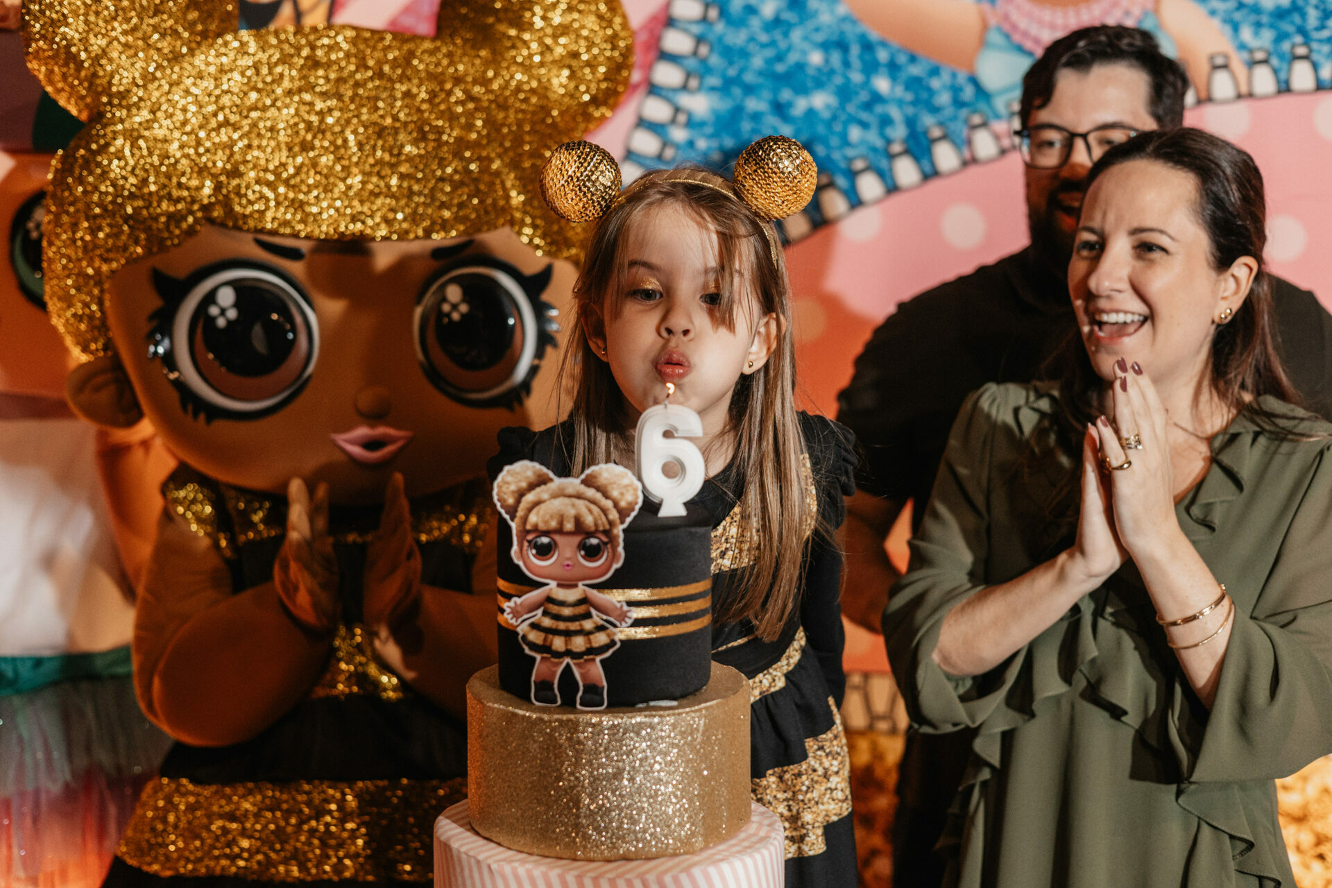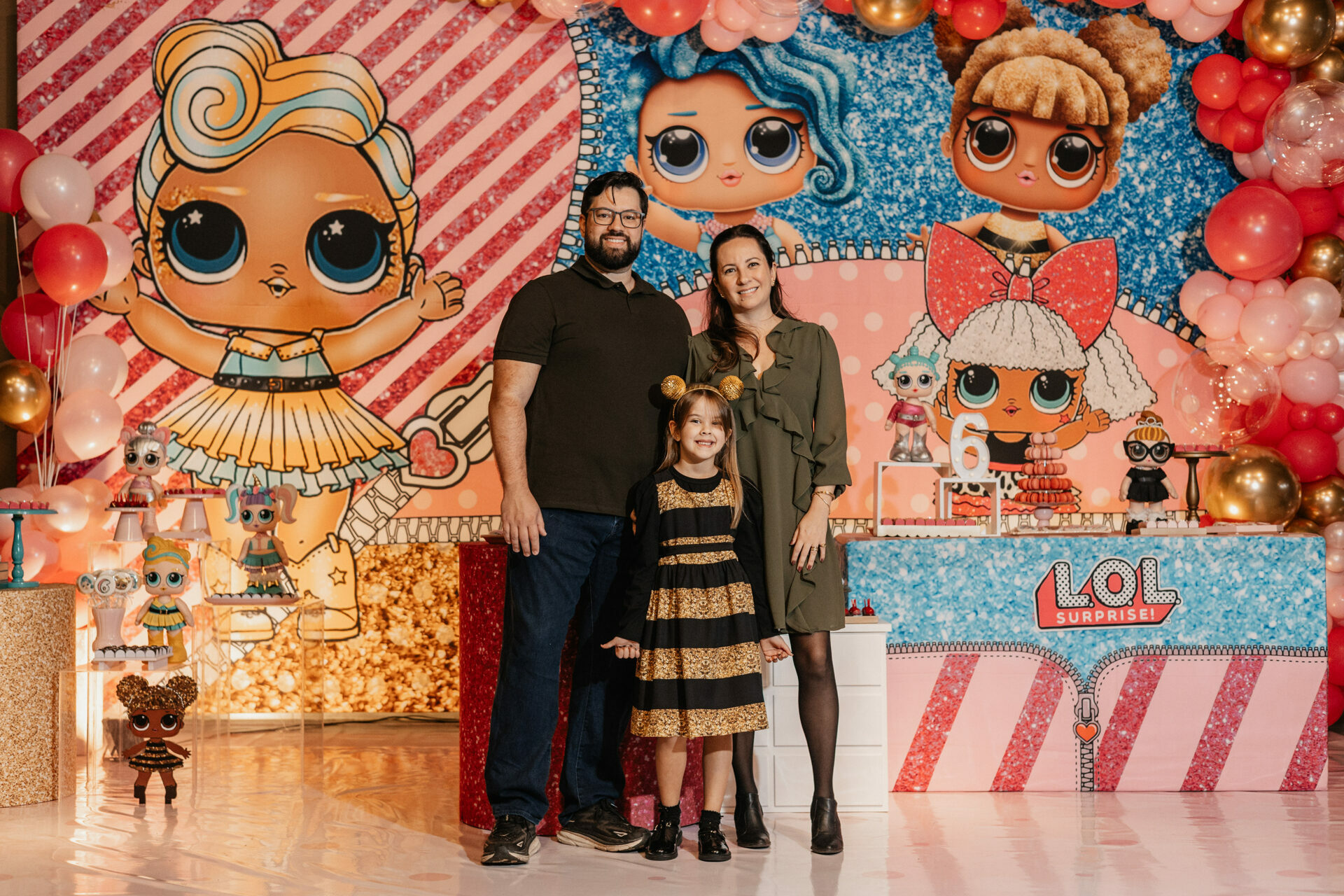 Este ano, ao completar 6 anos, a Laura mergulhou de vez no universo colorido e divertido das LOL Surprise. E não poderia ter escolhido tema mais perfeito: brilho, fantasia, música e aquela energia alegre que combina exatamente com ela. Assim que cheguei ao Buffet Happy World, em Limeira, senti que tudo ali tinha a cara da Laura — dos balões vibrantes às luzes, da paleta rosa ao sorriso dela iluminando o salão.