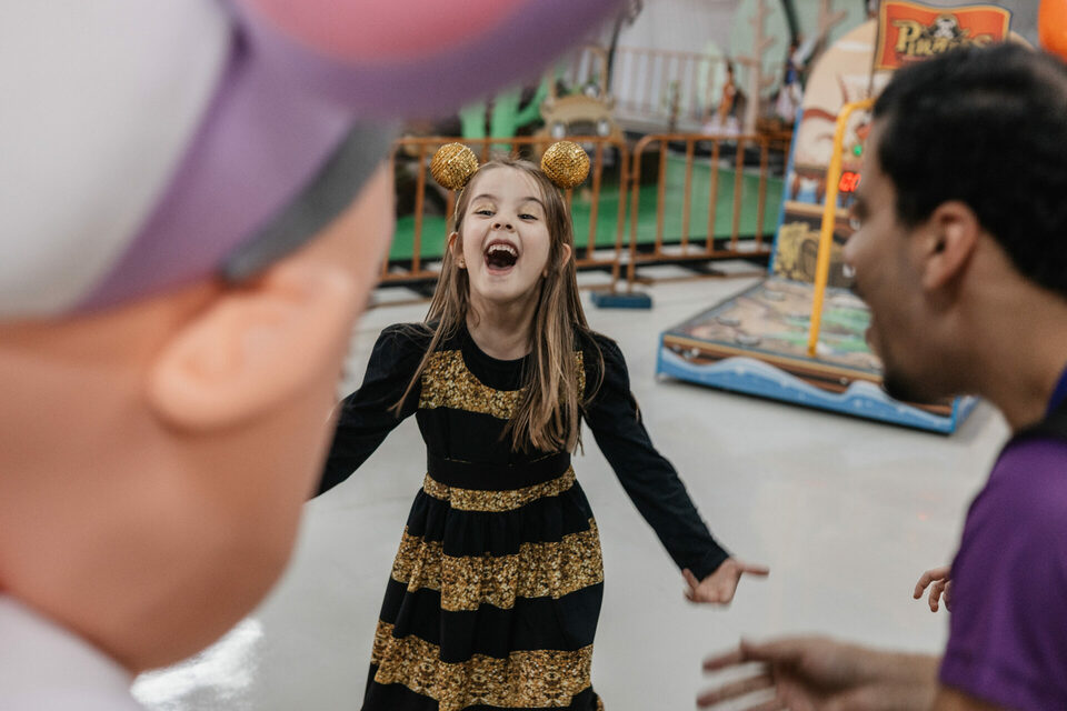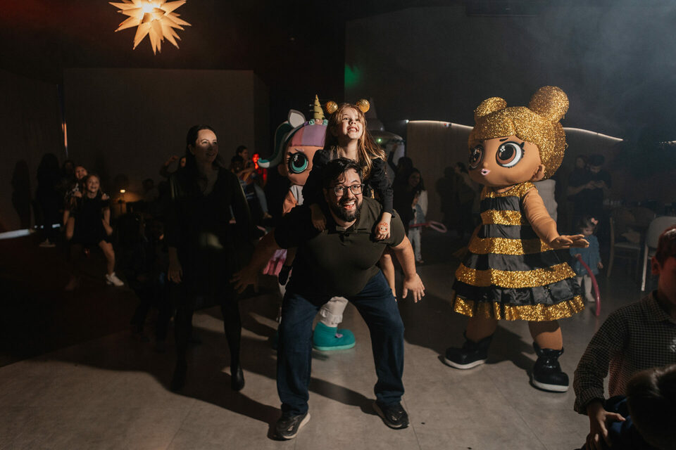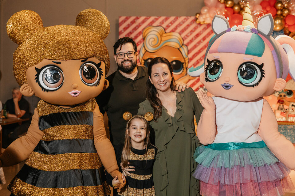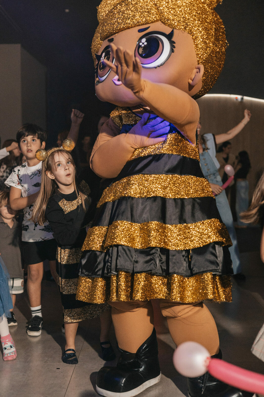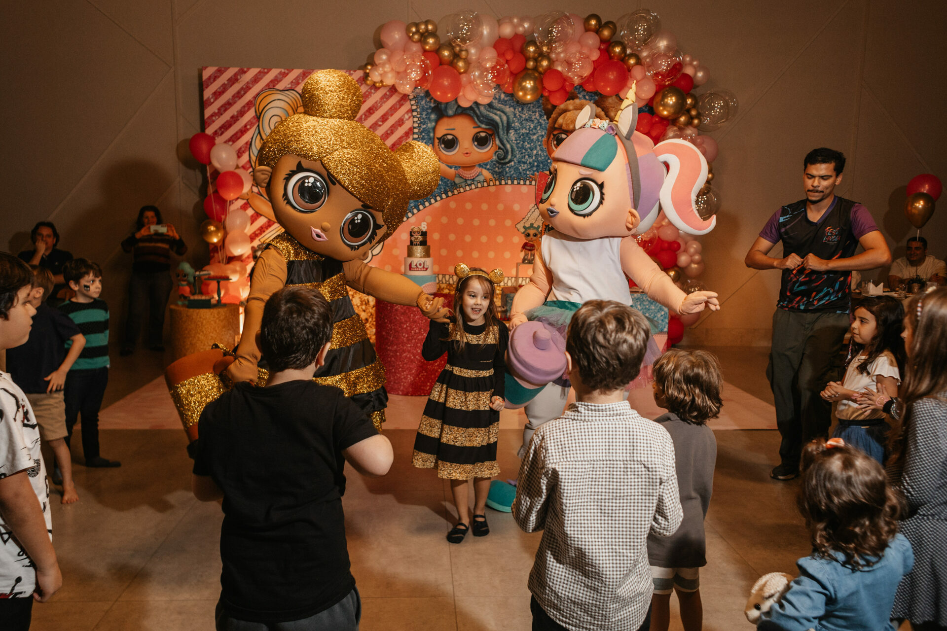 O ponto alto foi quando duas personagens LOL apareceram para celebrar junto. O brilho nos olhos da Laura entregou tudo: surpresa, encantamento e aquela alegria pura, livre, que só a infância sabe expressar. Ela abraçou, dançou, conversou, girou… como quem finalmente encontra suas versões mágicas em carne e osso.