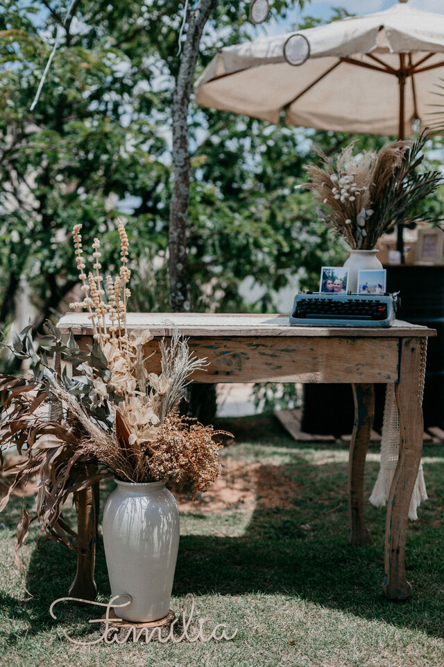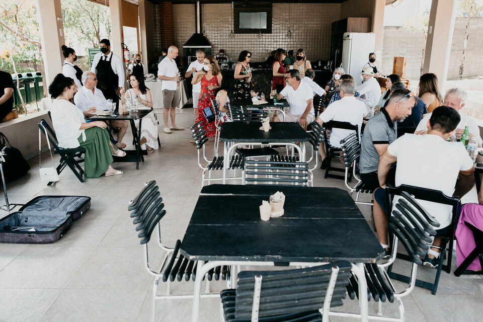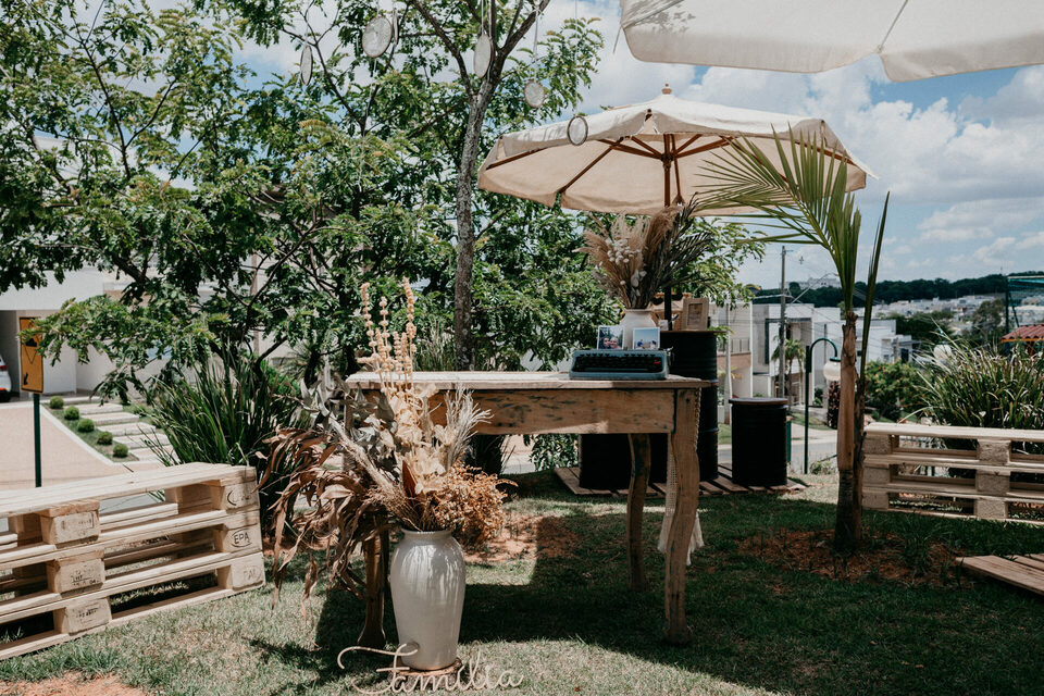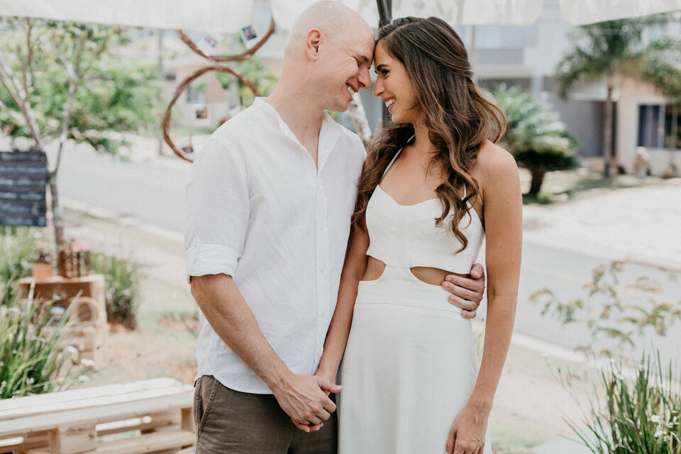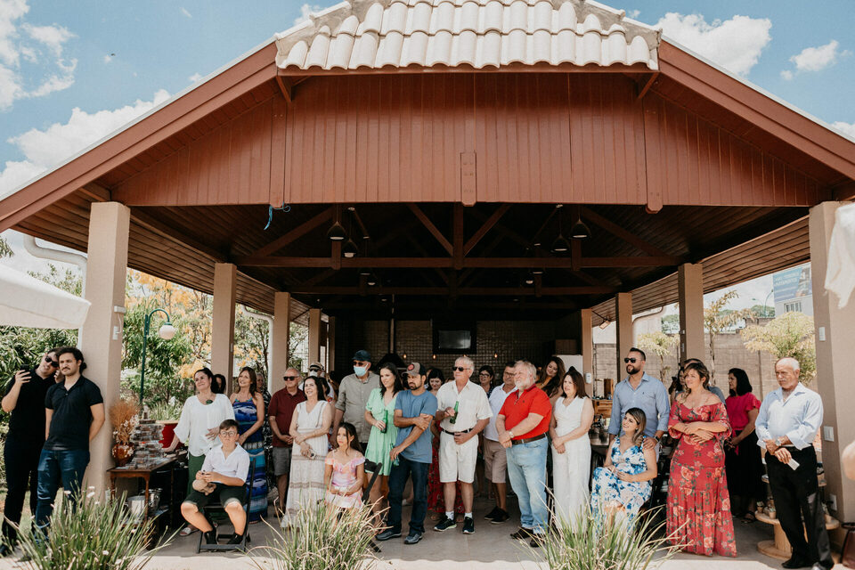 Os dois receberam os familiares para uma comemoração íntima, e não é porque era algo simples, que deixaram de caprichar. Transformaram o espaço da churrasqueira do condomínio em um ambiente agradável e aconchegante para selar essa união.
