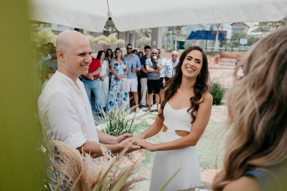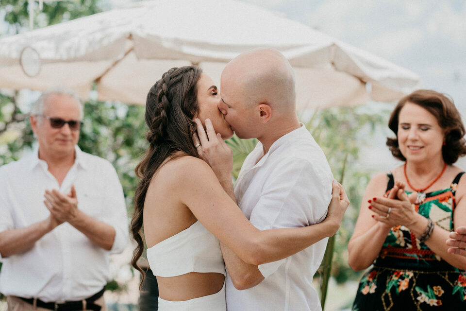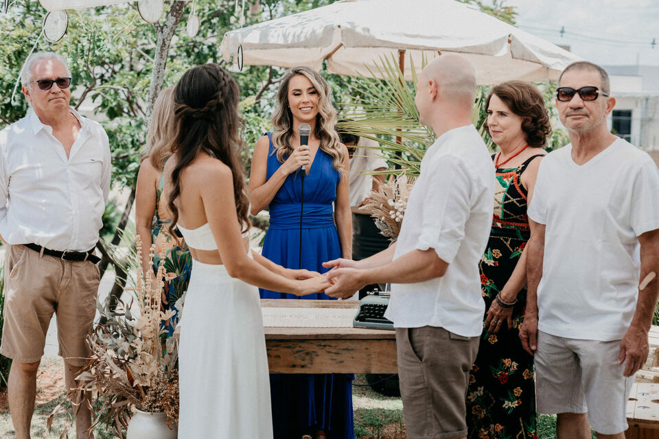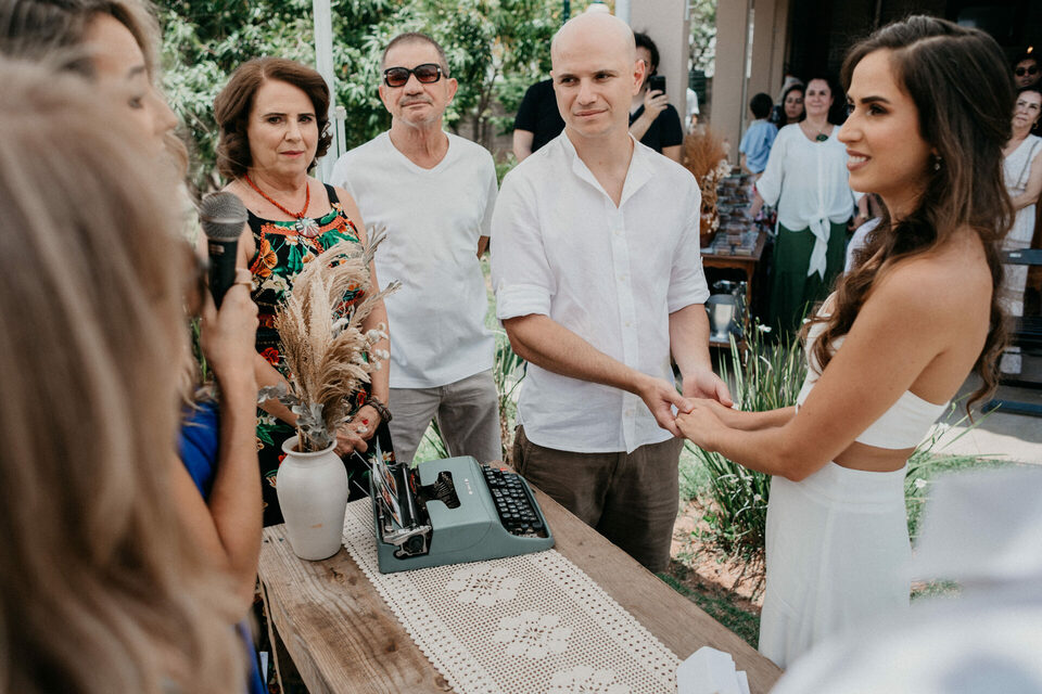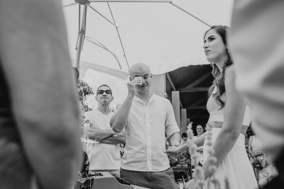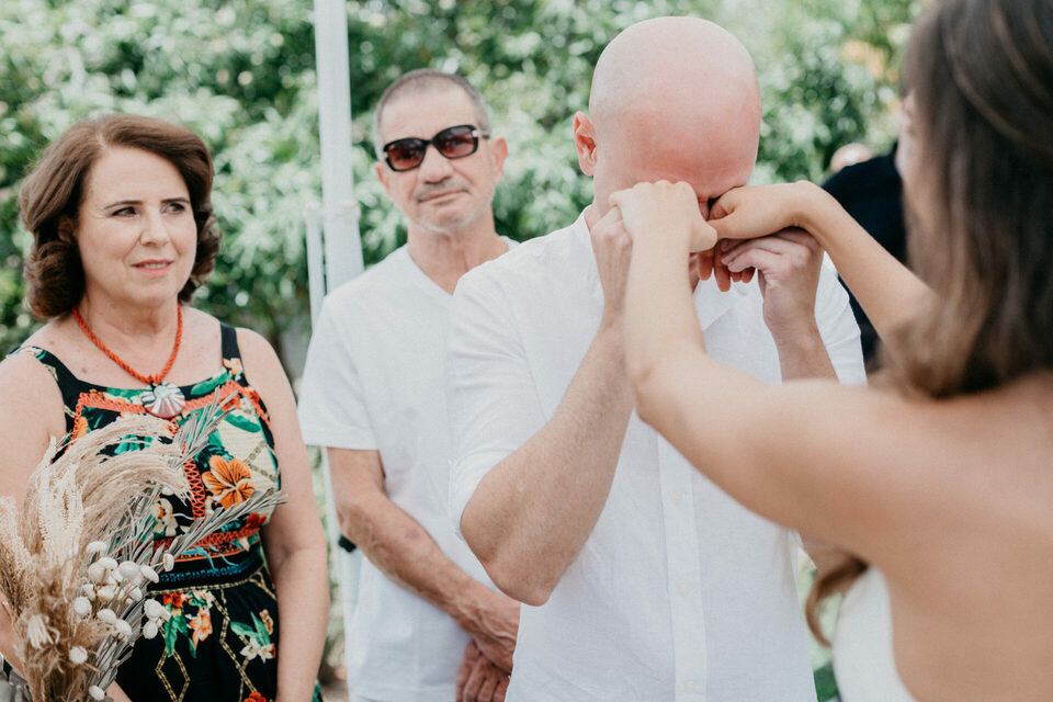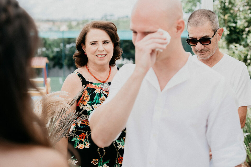 Com a benção dos pais, a cerimônia conduzida pela irmã da noiva e os parentes como testemunhas, a troca de alianças e dos votos, foram emocionantes. Tão emocionante, que o noivo chorou (e muito... rs)!