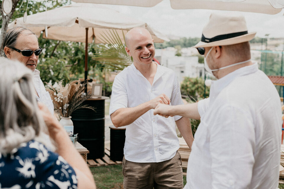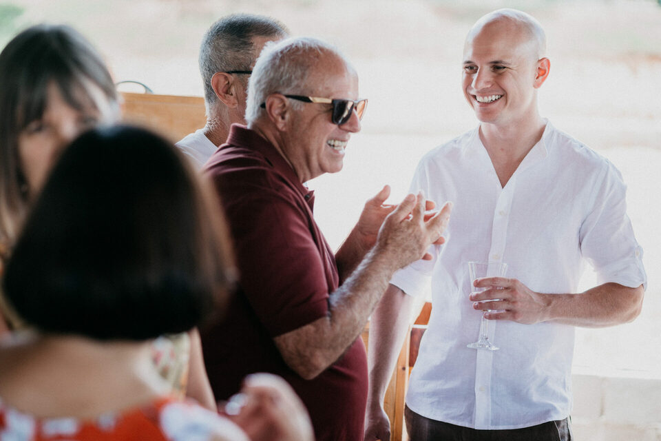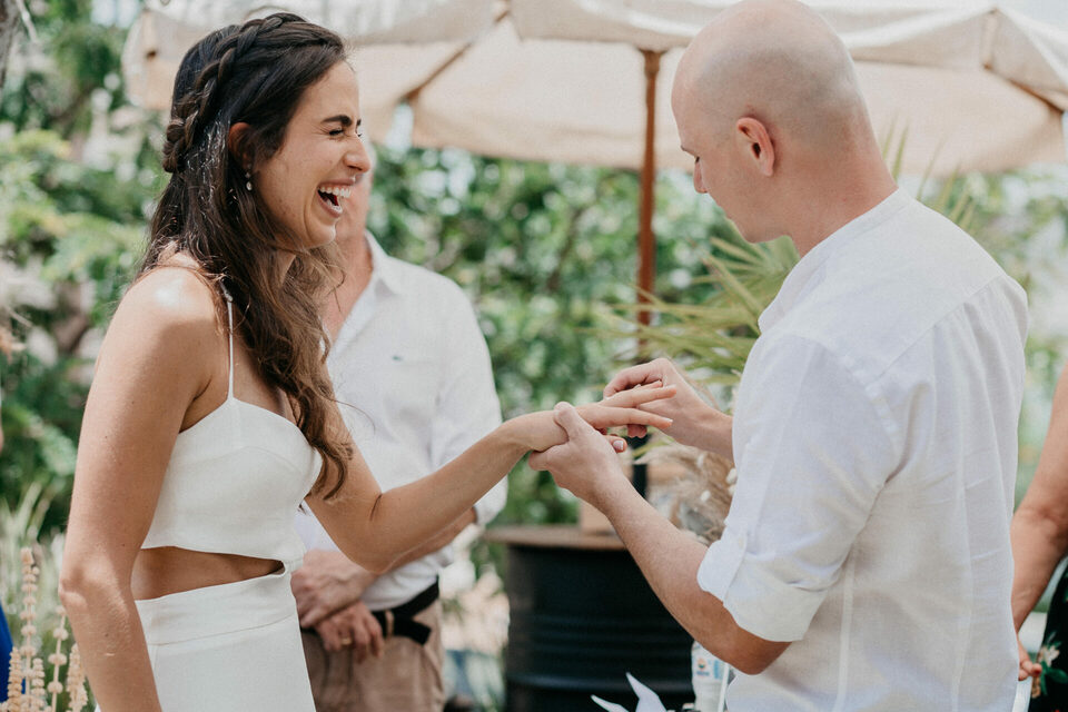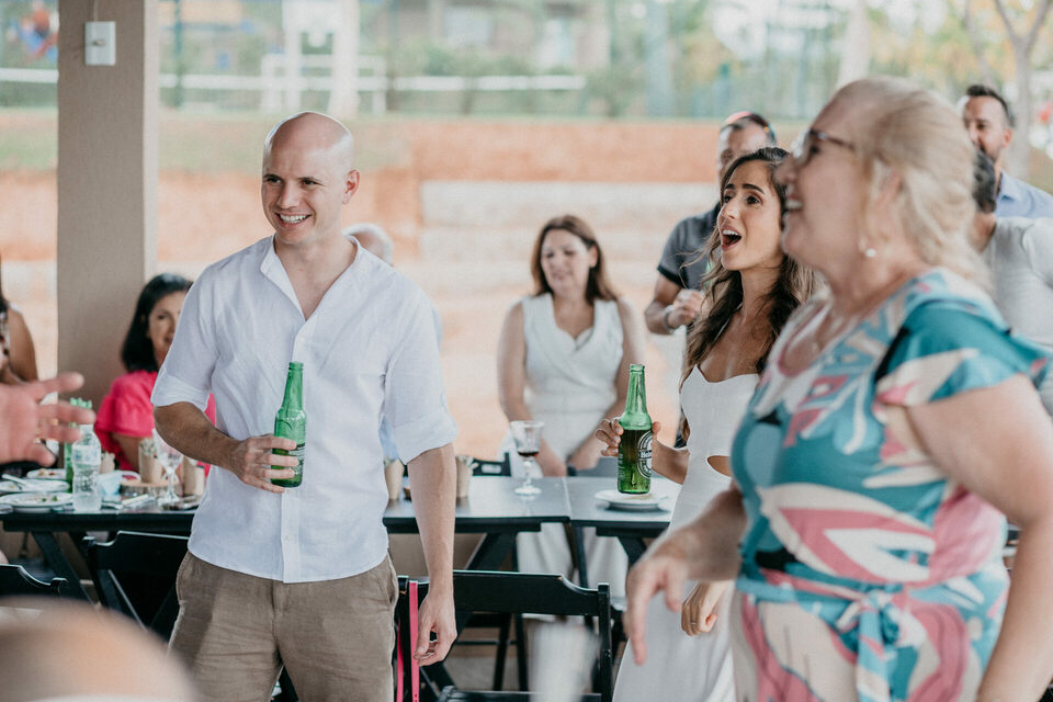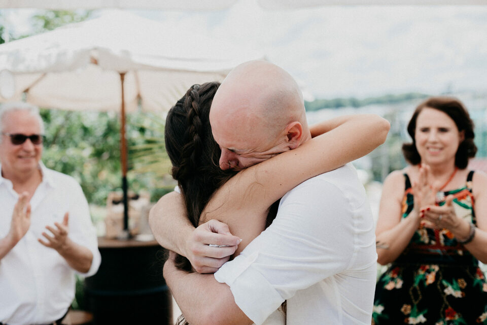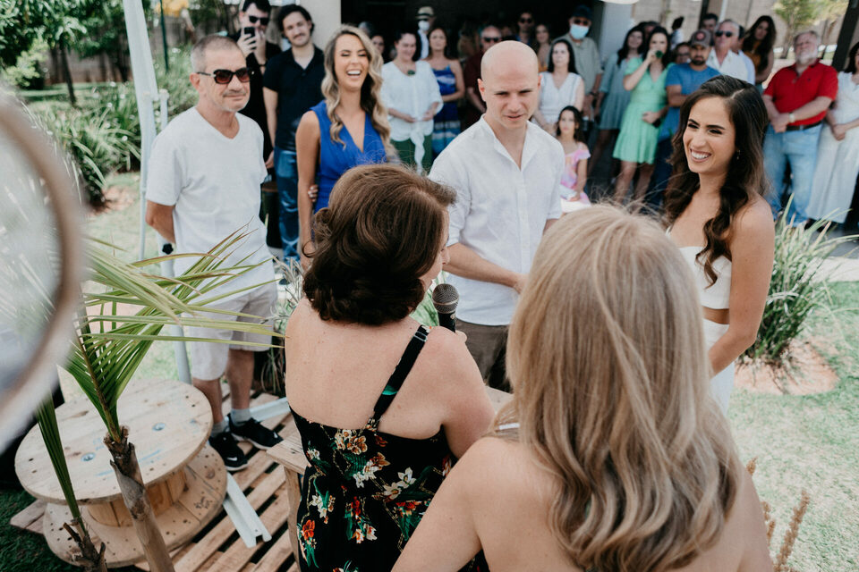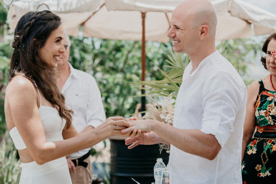 Com a benção dos pais, a cerimônia conduzida pela irmã da noiva e os parentes como testemunhas, a troca de alianças e dos votos, foram emocionantes. Tão emocionante, que o noivo chorou (e muito... rs)!