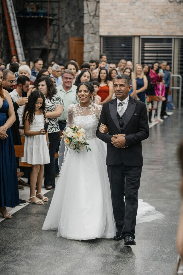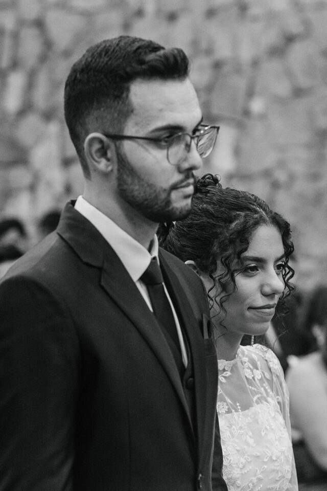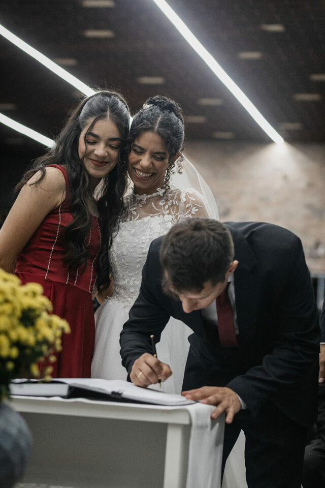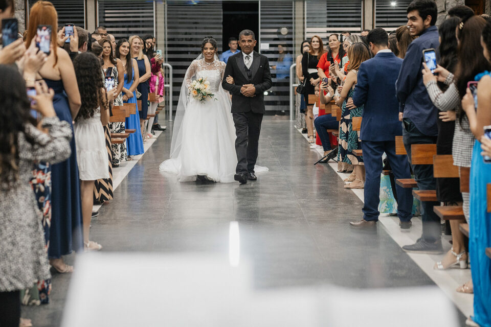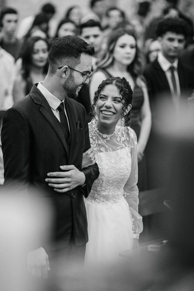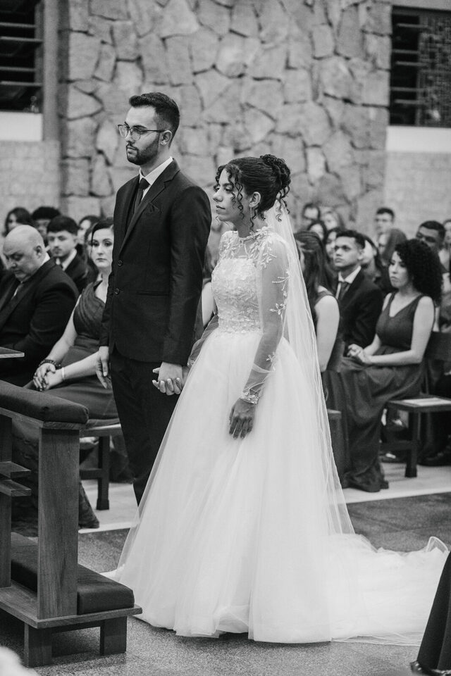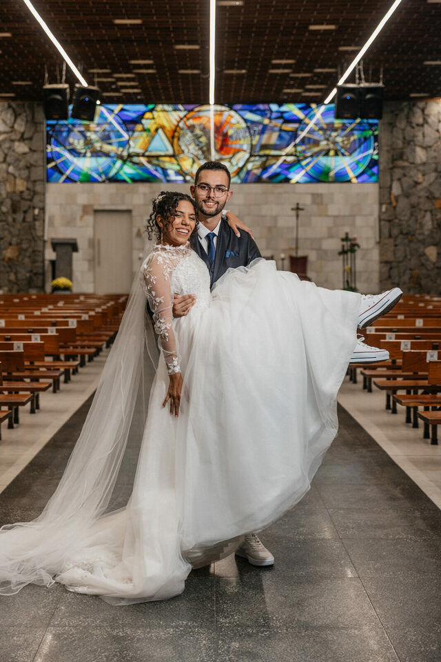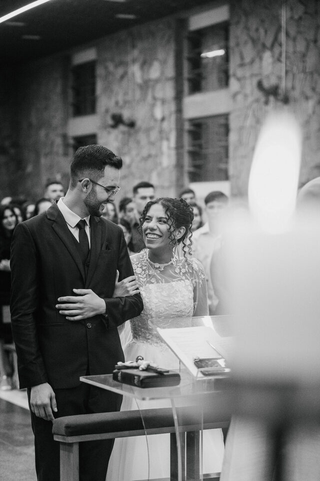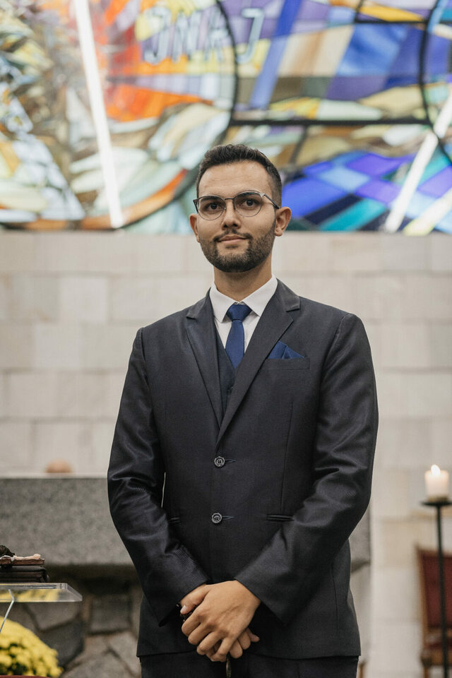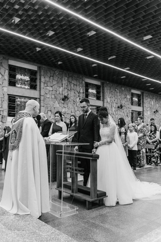 Eles optaram por uma celebração simples, mas a emoção estava em cada sorriso, olhar e momento. O casal, super conectado com a igreja, transformou a cerimônia em algo ainda mais especial. Dá pra ver que eles participam bastante da comunidade religiosa, tanto que os amigos não só estavam presentes, mas também cantaram durante a cerimônia, deixando tudo ainda mais bonito e emocionante.