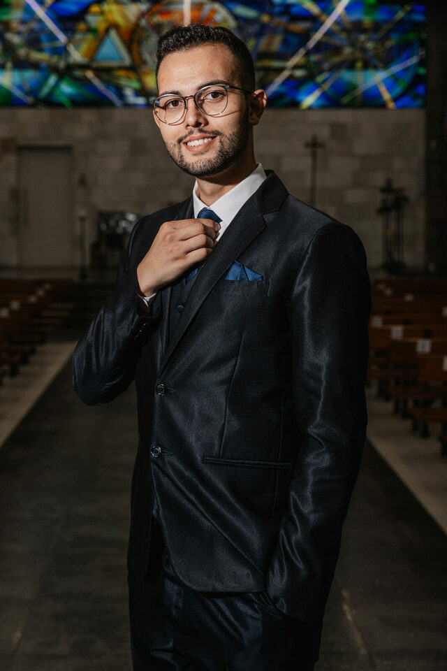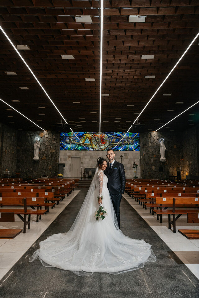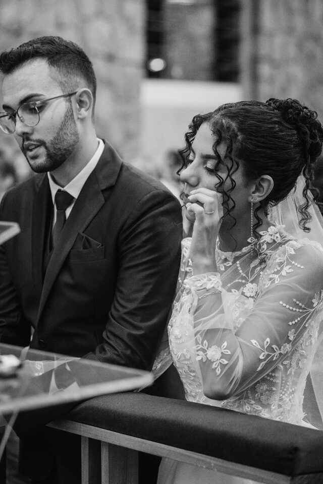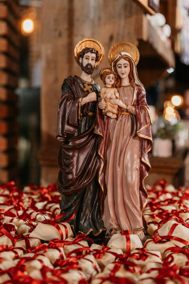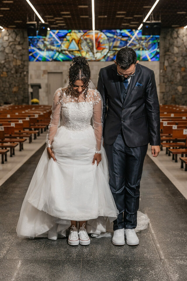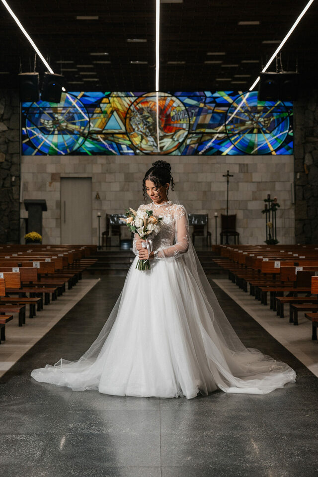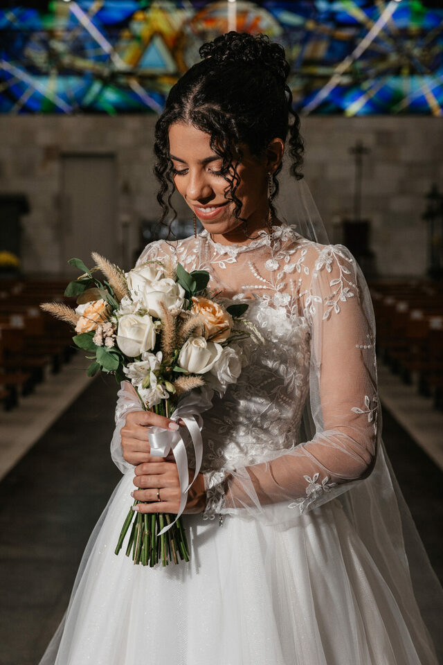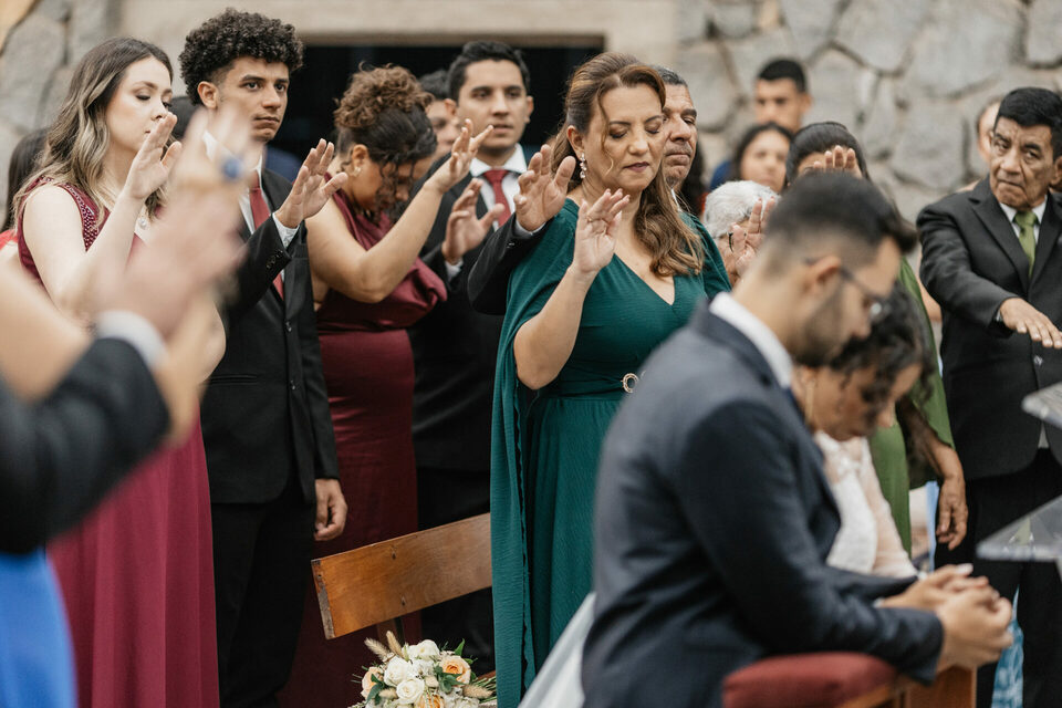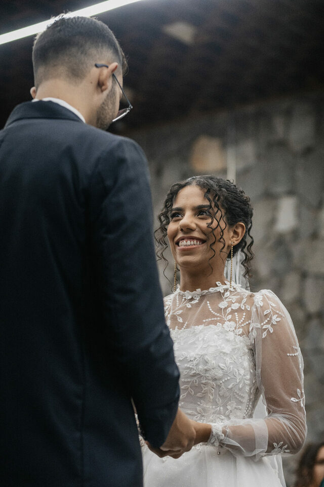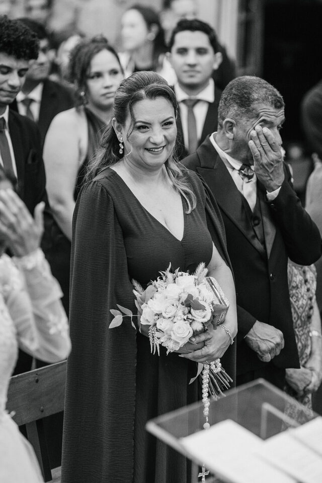 Eles optaram por uma celebração simples, mas a emoção estava em cada sorriso, olhar e momento. O casal, super conectado com a igreja, transformou a cerimônia em algo ainda mais especial. Dá pra ver que eles participam bastante da comunidade religiosa, tanto que os amigos não só estavam presentes, mas também cantaram durante a cerimônia, deixando tudo ainda mais bonito e emocionante.
