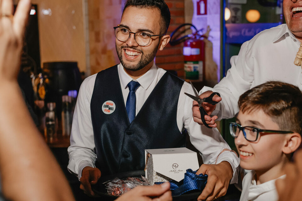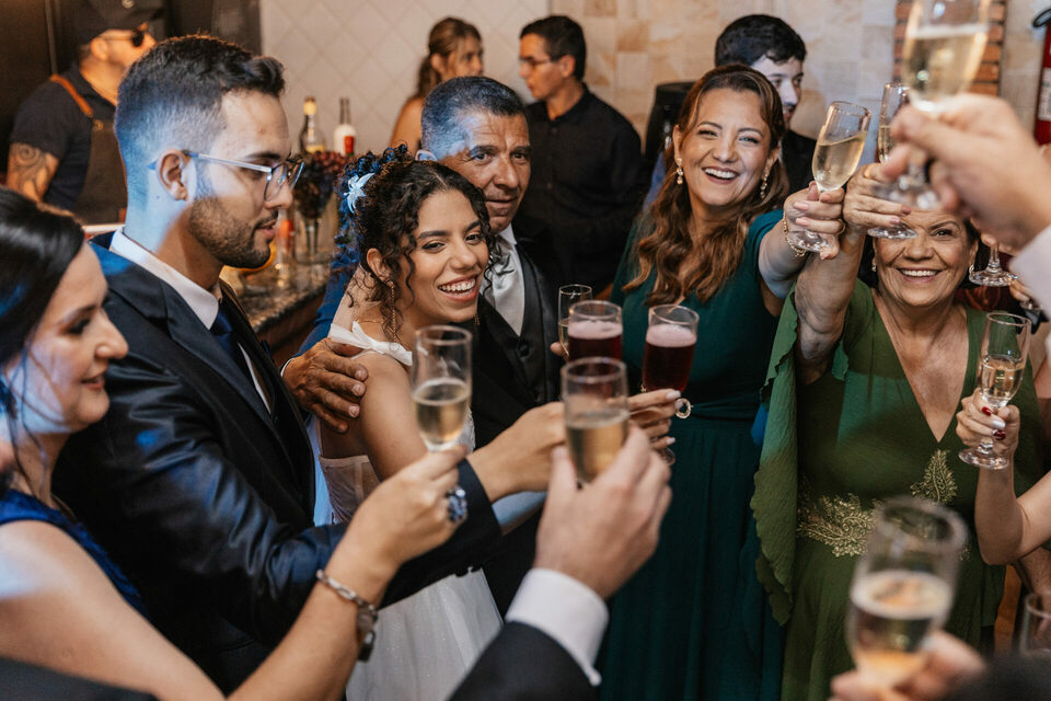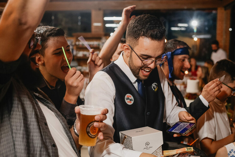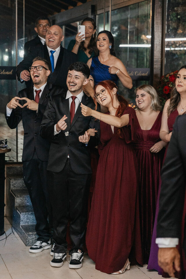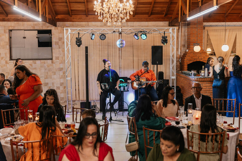 A festa foi daquele jeito que a gente ama: cheia de energia e carinho. Organizada pela própria família, a comemoração teve música ao vivo e DJ, o que garantiu que ninguém ficasse parado. Todo mundo, de todas as idades, aproveitou para dançar, rir e celebrar o amor dos noivos.