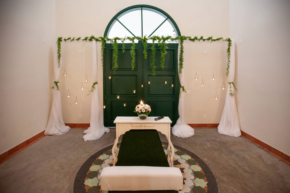 Chegamos no horário, cerimonial e decoradores estavam ajustando os últimos detalhes. Enquanto esperávamos o noivo chegar para o seu making of, os convidados já estavam escolhendo seus lugares, e nada do noivo chegar. A noiva já estava a caminho da cerimônia, em poucos minutos estaria na porta, pronta para entrar, e nada do noivo chegar.