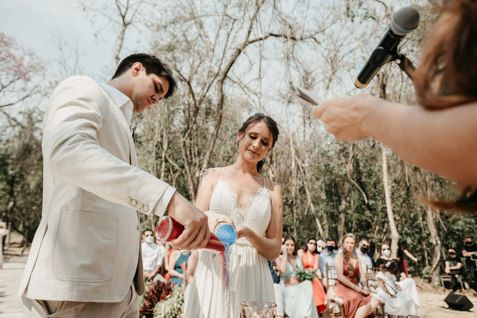 Desde o começo, dava para sentir que não seria um domingo, ou melhor, uma cerimônia qualquer. A conexão com a natureza, a paz interior e o carinho e a atenção com todas as pessoas que estavam presentes, eram os ingredientes perfeitos para que esse casamento fosse mais do que uma festa.