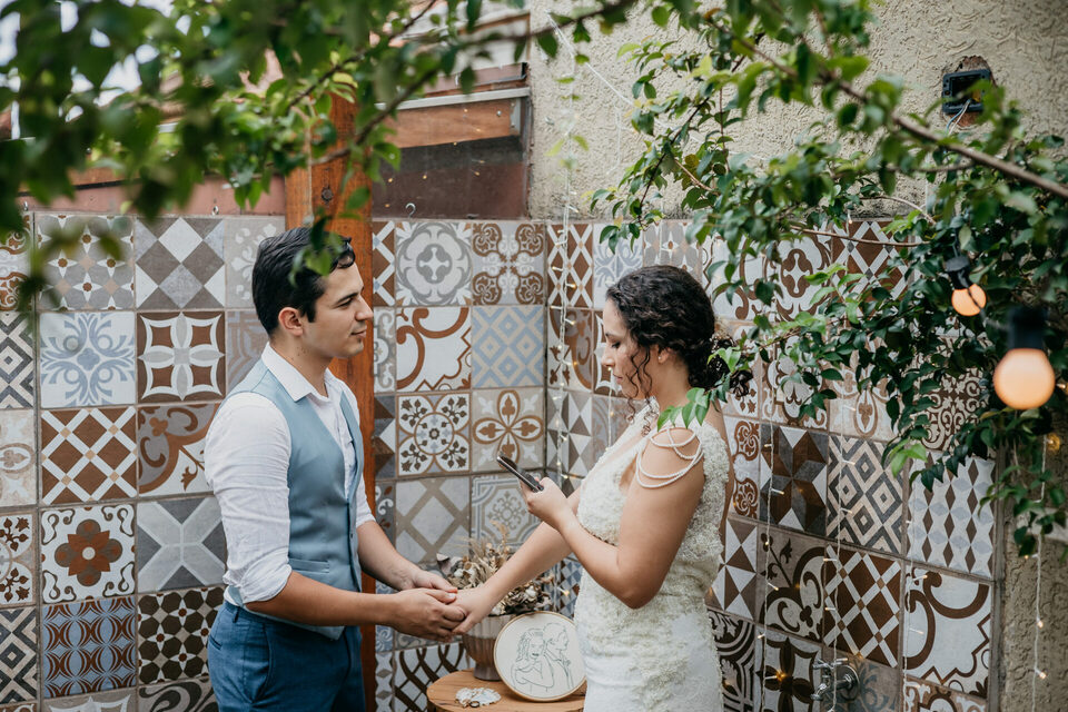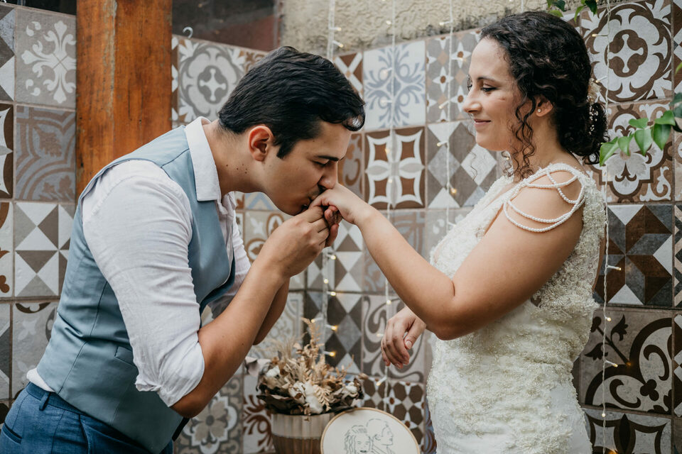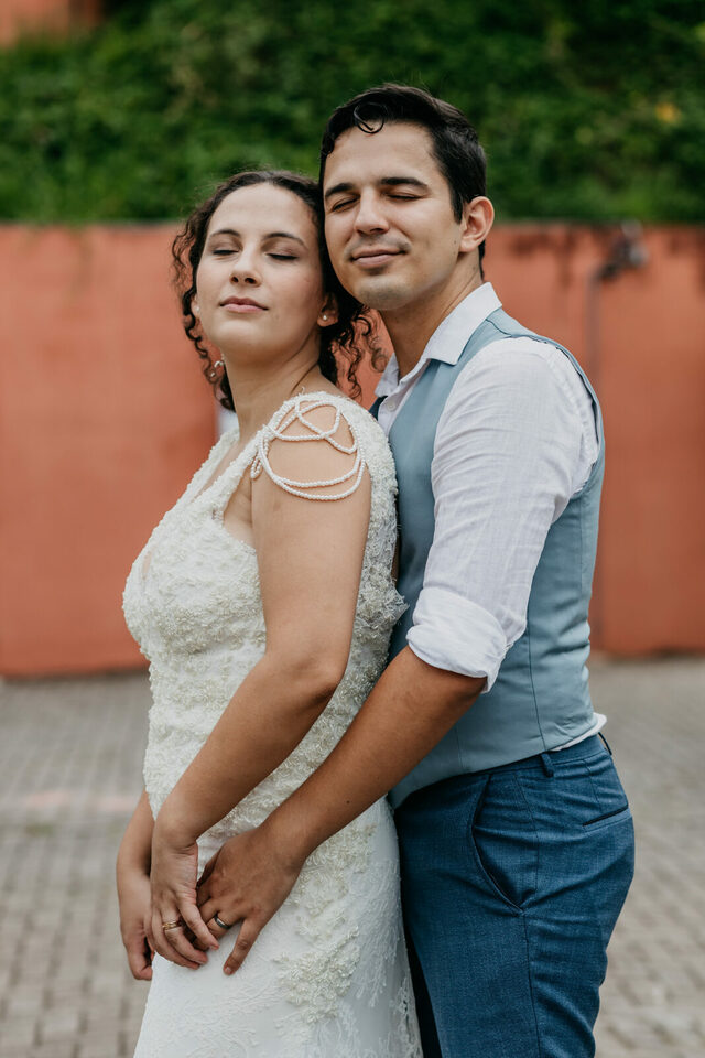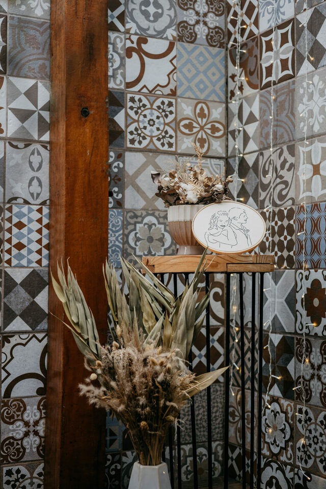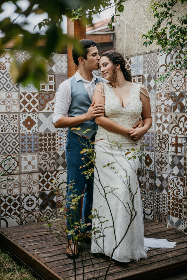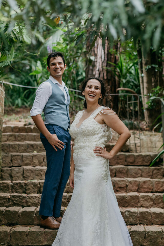 O cenário dessa vez, foi um lugar ... ou melhor ... foram 2 lugares muito especiais. O primeiro, onde trocaram os votos (que já é uma tradição), foi a casa onde moram. Escolheram um cantinho do quintal para transformar em altar e fizeram ali a própria "cerimônia". O segundo cenário, também tem um lugar especial na história do casal. Fizemos o ensaio no restaurante onde realizaram a festa do casamento. Foi incrível poder visitar o local depois de tanto tempo.